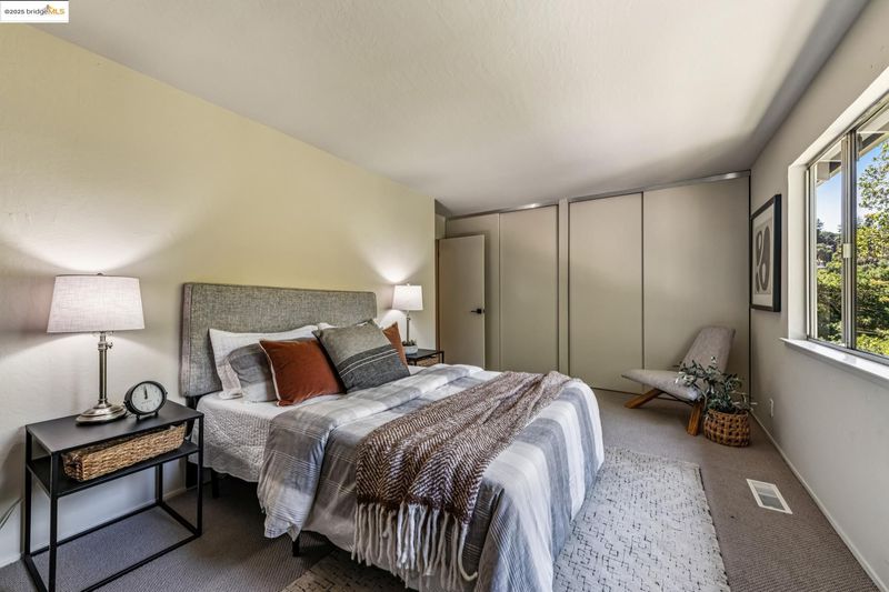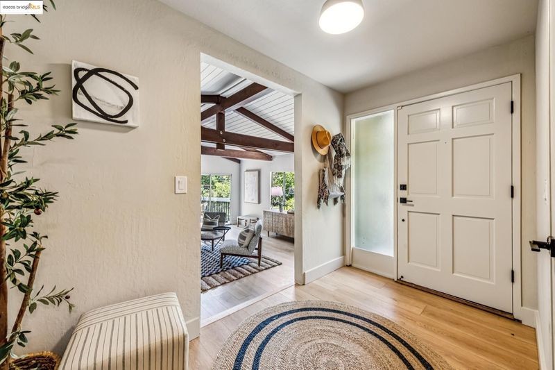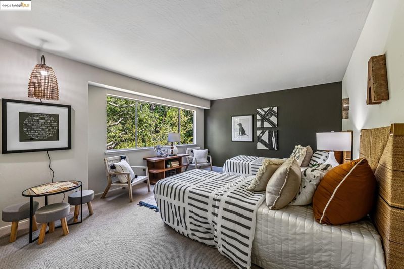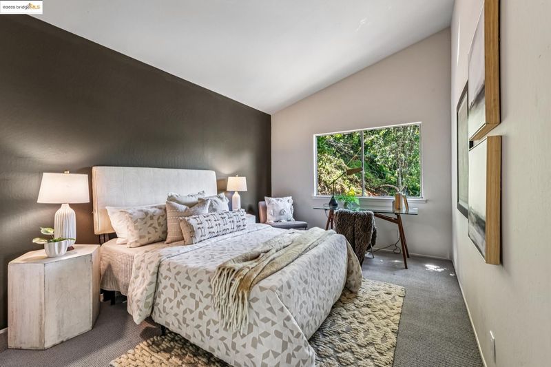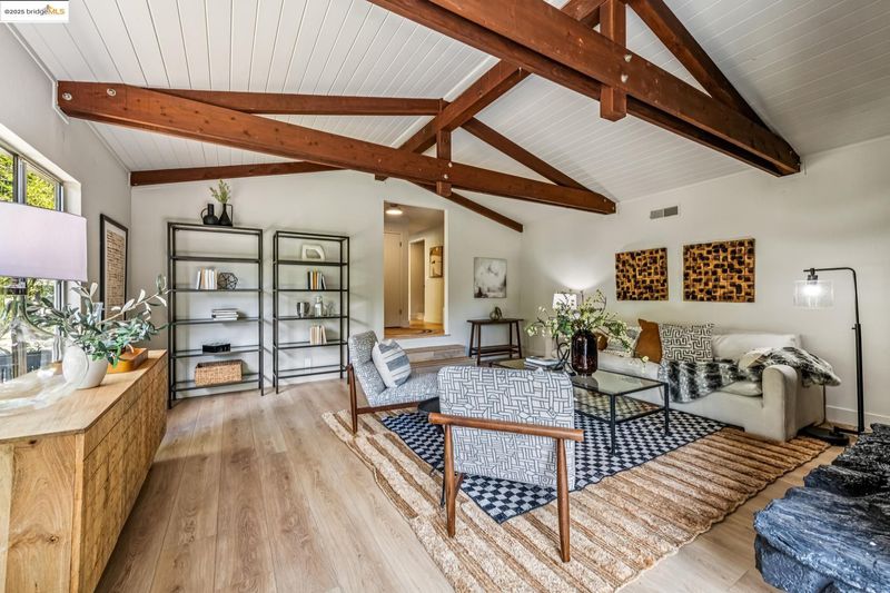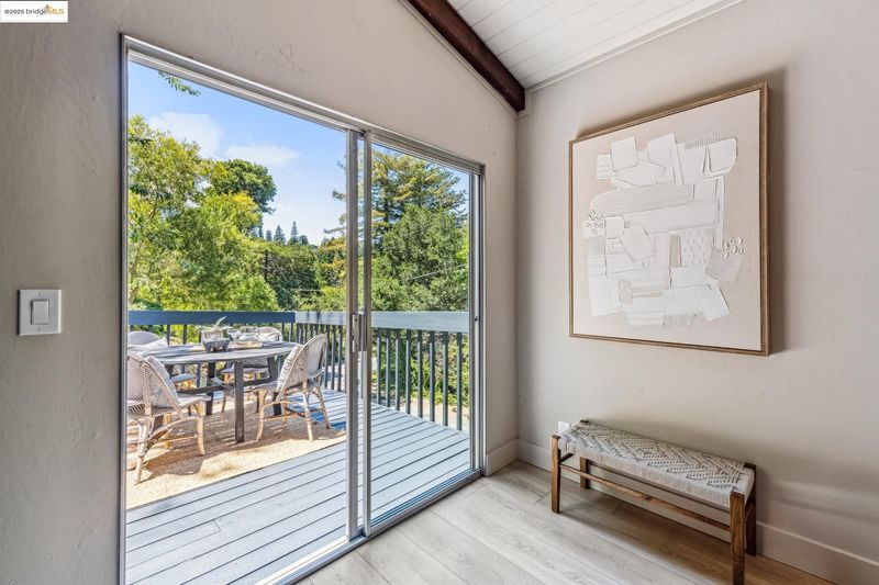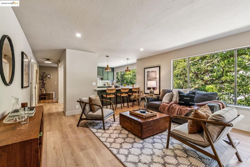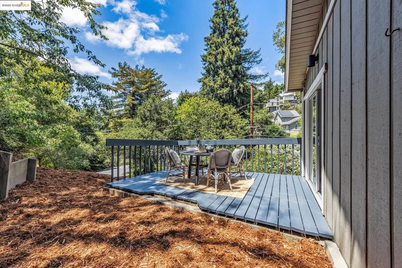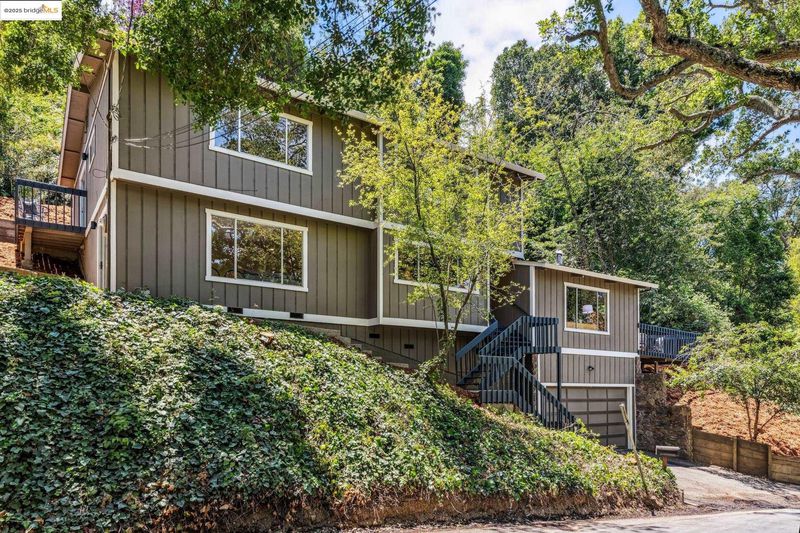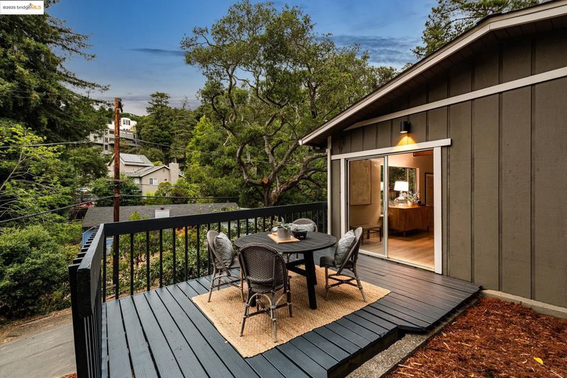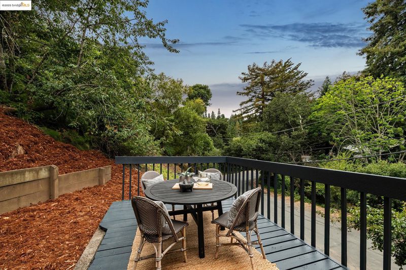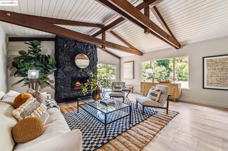 Beautiful contemporary home in Montclair’s sought-after Thornhill district is the best of both worlds, offering the quiet solitude of canyon living with Montclair Village’s shops & restaurants just minutes away. Nestled into the canyon and surrounded by mature trees and a variety of flora and fauna, 1801 Gouldin Rd is a natural sanctuary. This fab home has been beautifully updated throughout, blending mid-century charm and an open floor plan all bathed in natural light. Featuring 4 expansive bedrooms, 2 full bathrooms and 1 half bath across a spacious 2,658+/- sf, this serene retreat is a perfect balance of classic style and modern luxury while seamlessly integrating with the natural beauty that surrounds. A modern kitchen flows into an open dining room and living room area. The family room with soaring wood-beamed ceiling and floor-to-ceiling stone fireplace exudes bohemian charm. Step through sliding doors onto a spacious outdoor patio deck perfect for al fresco dining or even a potential hot tub location (buyer to verify). The second level features 4 spacious bedrooms and 2 full baths including fabulous owners ensuite with dual vanities, walk-in closet, and exterior deck. Just minutes to Montclair Village shops and restaurants, and easy commute options to the City.