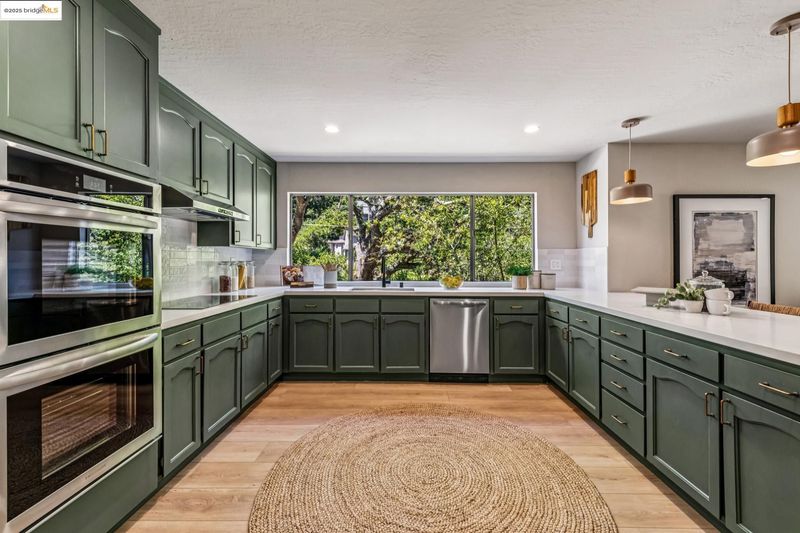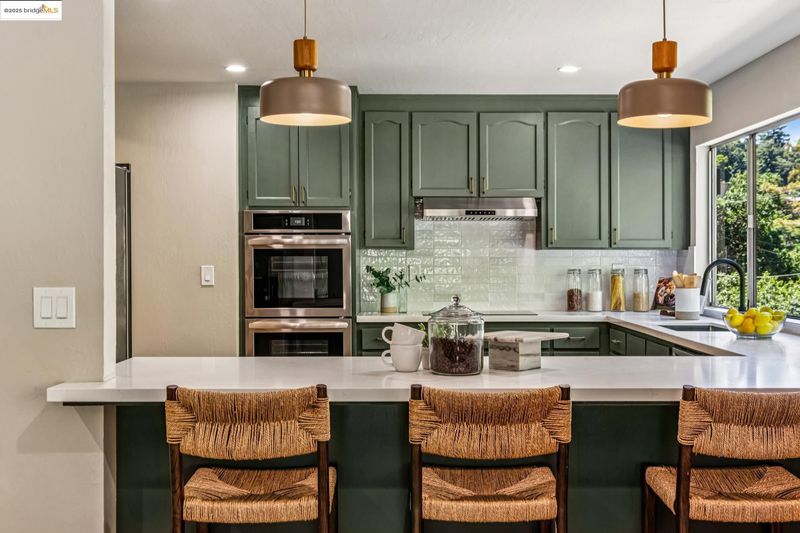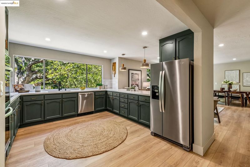 - Dishwasher, Electric Range, Range, Refrigerator, Breakfast Bar, Counter - Solid Surface, Electric Range/Cooktop, Range/Oven Built-in, Updated Kitchen