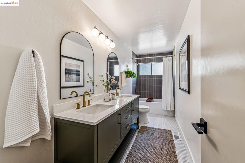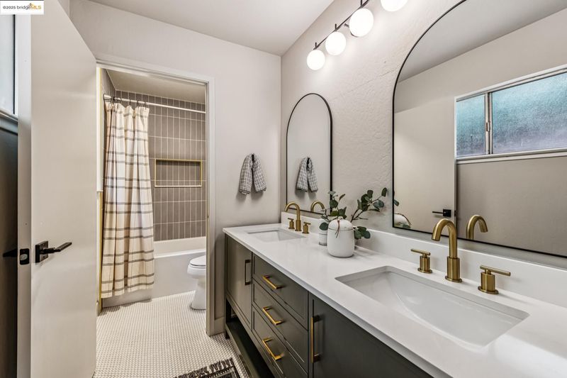 - Shower Over Tub, Solid Surface, Tile, Updated Baths, Double Vanity, Window