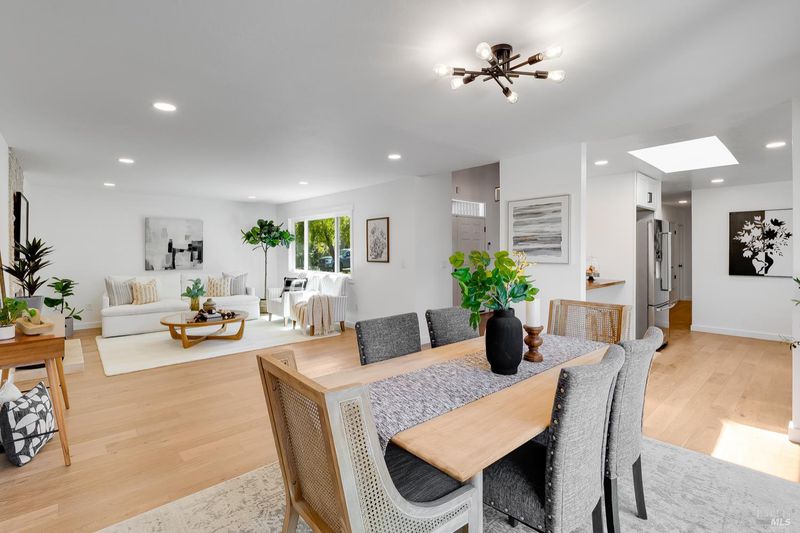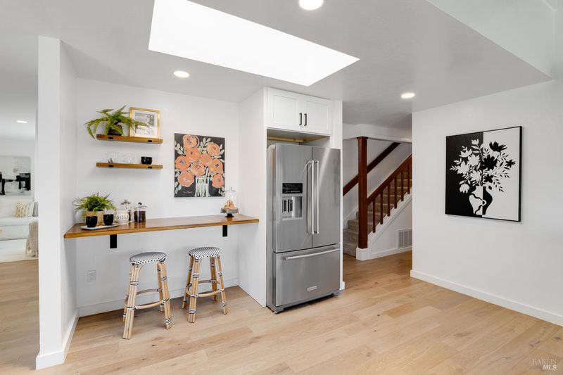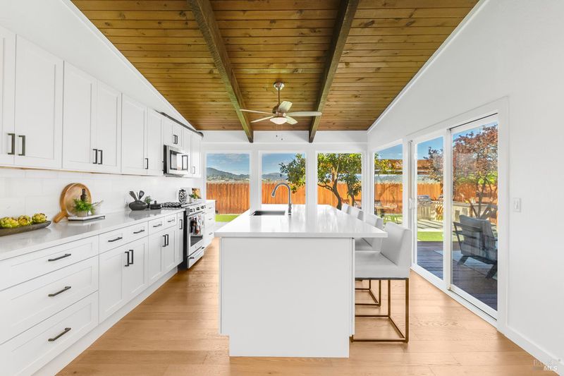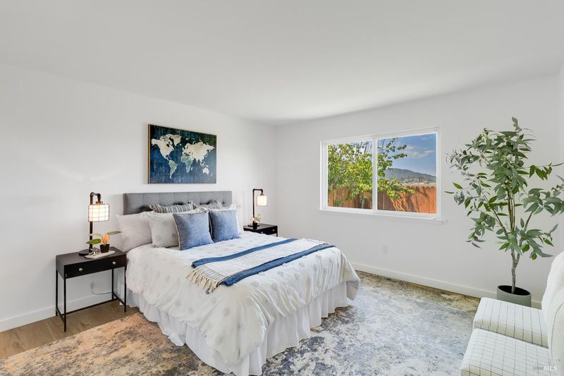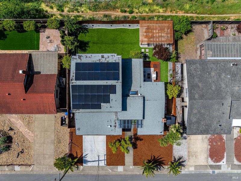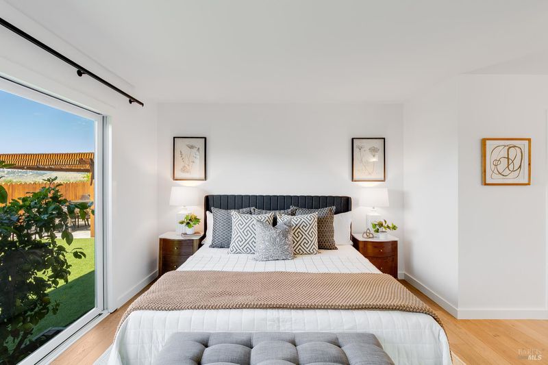 Beautifully updated 5 bedroom, 3 bath, 2,576 sqft home in Mariner Cove. Main level features a primary suite with backyard access, 2 bedrooms, remodeled bathrooms, bright open concept kitchen that flows into the dining room and a spacious living room with wood burning fireplace. Upstairs offers two additional large bedrooms, loft, updated bathroom, and an oversized closet for ample storage. Freshly mulched, low maintenance front yard with mature trees. The serene backyard is perfect for entertaining or relaxing with wood decking, custom built outdoor BBQ, pergola with remote controlled lighting, pizza oven, artificial grass, lush cherry, lemon, apple, and orange trees, plus a storage shed all complemented by solar powered lights and thoughtfully designed landscaping. Additional highlights include double-pane windows, updated central heating, wall unit A/Cs, EV charger, and owned oversized solar system at NEM 2.0 that adds significant value with enhanced energy production and reduced utility costs. Can't miss the stunning Mt. Tamalpais views or amazing sunsets! Conveniently located near top rated schools, easy access to HWY 101, public transit, and the ferry. Just minutes to Nugget Market and The Village. A wonderful place to call home, must see in person!
