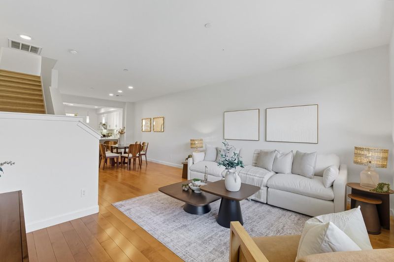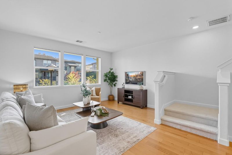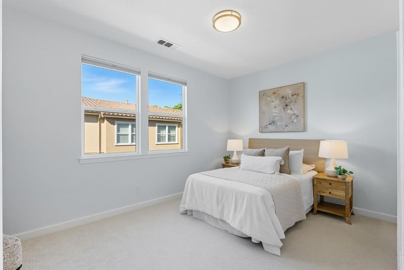 Highly Sought-After 3 Bed / 3 Bath Fusion Townhome in the Heart of Sunnyvale! This luxurious home has just been refreshed w/ new paint throughout and brand new carpet, making it move-in ready. The spacious ground-level bedroom & bathroom are perfect for in-laws, visitors or rental income. Enjoy recessed lighting, vibrant hardwood floors, plush carpet, and tons of natural light. The formal entry leads upstairs to an open-concept living and dining area. The fully upgraded gourmet kitchen features top-of-the-line granite counters, stainless steel appliances, a stylish tile backsplash, a workstation, and a cozy balcony. The oversized owners suite offers two walk-in closets, dual sinks, and a large stall shower w/a separate toilet. A spacious junior suite with a full bath and laundry located upstairs. Ample storage throughout. 2 Car Garage. Endless Community amenities include a movie theater, clubhouse, fire pit, gym, play area, putting green, and more, all with a low HOA fee. Easy access to major freeways such as 101, 85 and 237. Near multiple Sunnyvale parks such as Swegles, Muwekma and Wiser Park, all within walking distance. Ideal location near Amazon, Apple, Google, Nvidia & more! Located minutes from Downtown Sunnyvale w/dining, shopping & entertainment! Don't miss out!