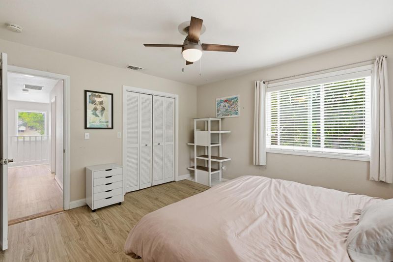 Rare opportunity in Land Park! This updated 2-bedroom, 2-bath townhome is tucked away in a private cul-de-sac and filled with natural light. The home features laminate flooring and an open-concept floor plan that flows seamlessly into the kitchen, living room, and breakfast nook. Both bedrooms are spacious. The primary bedroom includes a loft, a huge walk-in closet, and two interior doors leading to a hot sauna and additional storage. The bathrooms have been updated, and the large sunny yard offers great outdoor space. Additional features include dual-pane windows, whole house fan, air conditioning, and a 1-car garage. Conveniently located just minutes from Downtown, Golden 1 Center, and local coffee shops and eateries. Small HOA with only 6 units.