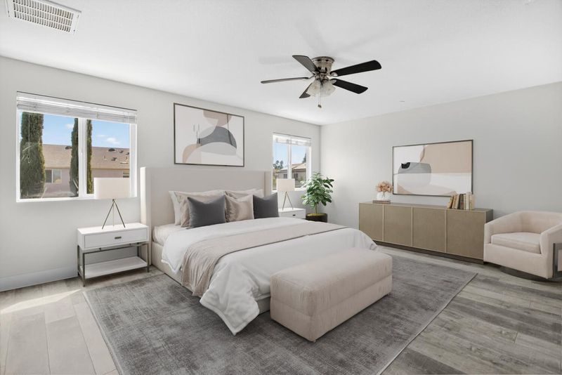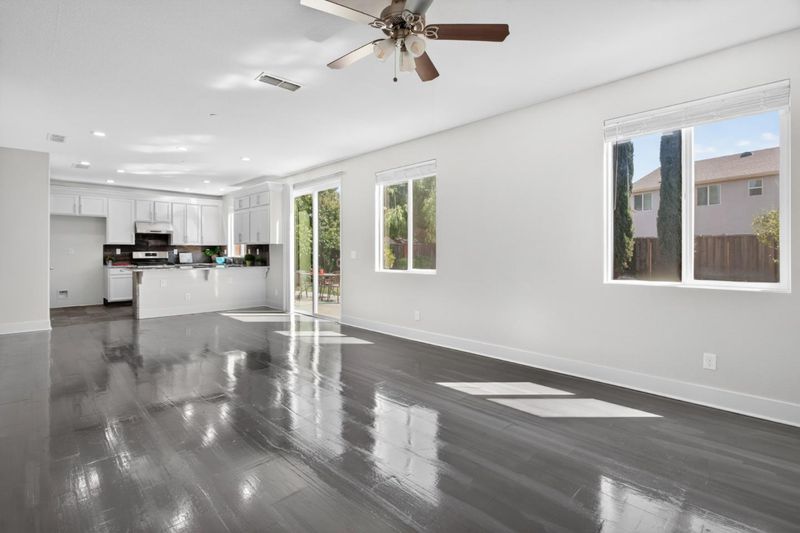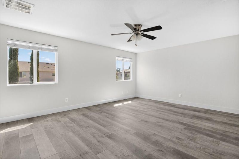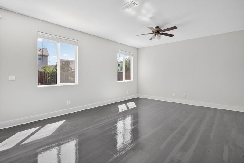 Fall in love, truly a rare and stunning 5 Bd 3 Ba home, nestled on a peaceful, highly desirable cul-de-sac. The moment you step inside, you'll be captivated by the open-concept main level, where soaring 9-foot ceilings and gorgeous red oak hardwood floors create an immediate sense of grandeur. The kitchen features elegant new granite countertops and a massive 33 in farmhouse sink. The must have island makes it the perfect hub for gathering friends and family. The massive master suite is a luxurious retreat with an enormous walk-in closet, while the entire second floor and stairs are finished with new waterproof laminate flooring. The master and hall baths feature new defogging mirrors. A downstairs bedroom offers a perfect, private space for guests or multi-generational living. Every corner is bathed in light from 32 brand-new LED lights, and new 5.5-inch baseboards add a final touch of polish. Step outside to your private, low-maintenance oasis. The backyard features a French drainage system and a treasure trove of mature citrus and peach trees, providing fresh fruit all year long. Just walk n turn the corner to the award-winning Peyton Elementary n Middle schools n the community park. Easy access to FWY 99, 4, and 5. Plus, nearby Costco, Walmart, Lowes, Home Depot & etc: NO HOA