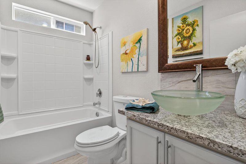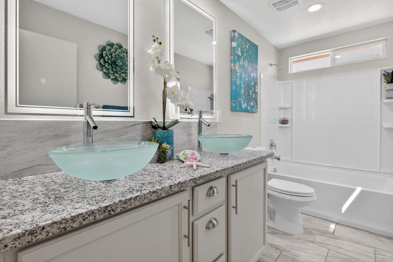 - Double Sinks, Full on Ground Floor, Granite, Primary - Sunken Tub, Shower and Tub, Stone, Tile, Updated Bath