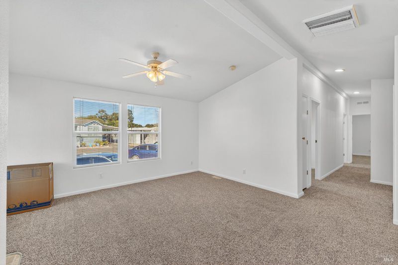 Welcome home to this charming and move-in ready recently built manufactured home (built in 2004), offering 969 sq. ft. of comfortable living space. This bright and inviting residence features an updated kitchen, 3 bedrooms, 1 hall bathroom, 1 primary bathroom with ADA access features, a spacious living room, dining area, and a convenient laundry room. Enjoy brand-new carpet and fresh interior paint throughout, giving the home a fresh, modern feel. Located in the well-maintained, 55+ Las Casitas community, amenities include a swimming pool, clubhouse, & social activities. Step outside and enjoy fresh air and beautiful sunsets from your front porch. A storage shed and outdoor lift are also included for added convenience and accessibility. This home provides both comfort & convenience. Perfectly situated in the heart of American Canyon, you'll be close to shopping, dining, and parks everything you need is just minutes away! Don't miss this affordable and welcoming home in one of American Canyon's most sought-after senior communities.