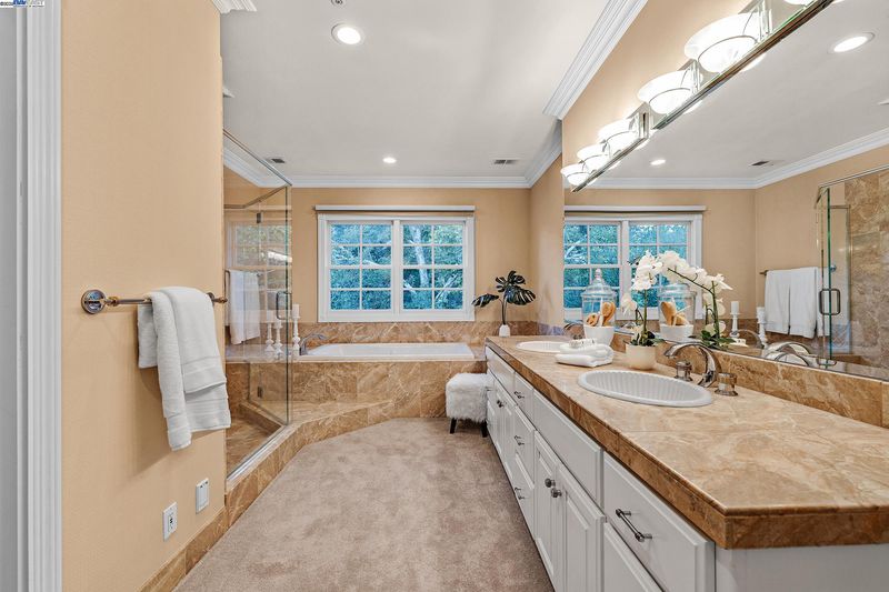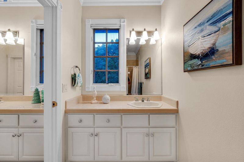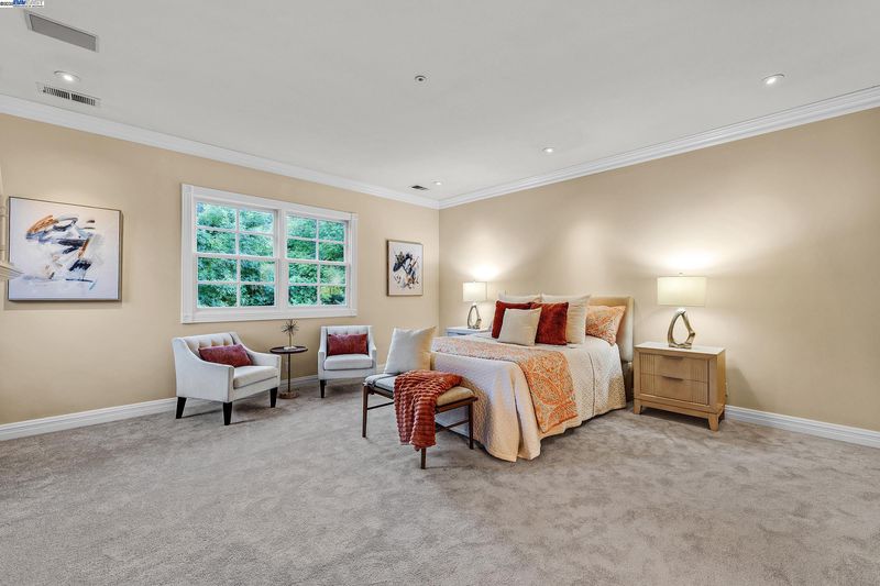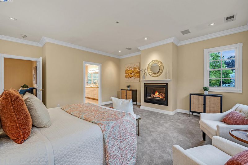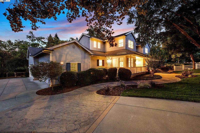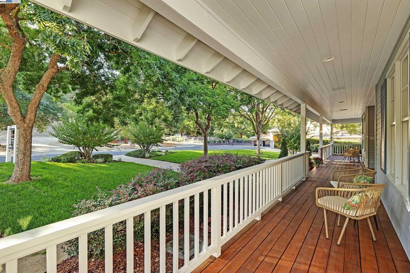 Nestled in an exclusive neighborhood adjacent to The Club at Castlewood and the Pleasanton Ridge, this stunning, meticulously-maintained, custom farmhouse-style home is a rare find, welcoming you with an expansive wraparound porch fronting serene open space. Inside, the home has a classic open layout with high ceilings, newly refinished Brazilian cherry hardwood floors, and new carpeting. Fresh paint, new windows, and French doors create a bright, airy feel. The elegant formal living and dining rooms flank the entryway, highlighted by a graceful, curved staircase. The spacious kitchen is a chef’s dream, equipped with Thermador range, Sub-Zero built-in refrigerator, butler's pantry, 500+ bottle wine storage, and informal dining seamlessly flowing to the open family room. The first floor has a stately office, half bath, and spacious bedroom with ensuite bathroom. Upstairs, two bedrooms share a Jack & Jill bathroom, and the primary suite offers a fireplace, spa-like bathroom, and generous walk-in closet. Manicured yards feature decks, raised garden beds, and your own vineyard. The 4-car garage includes extensive attic storage. Premium cul-de-sac location ensures a peaceful setting near downtown, served by award-winning schools, and easy access to I-580/I-680. No HOA/fees.