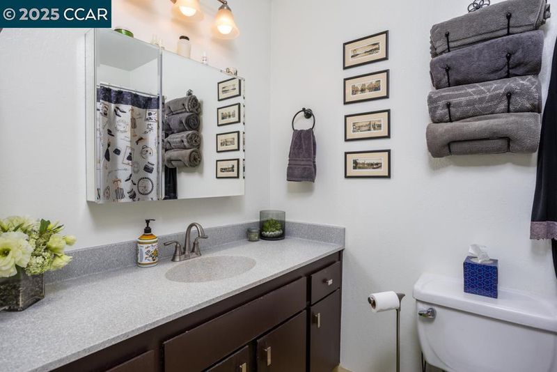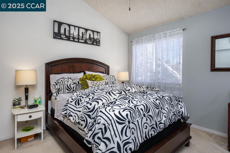 Welcome to this light and bright upper-end unit condo in the heart of Martinez! Offering 2 spacious bedrooms and 2 well-appointed bathrooms, this home is the perfect blend of comfort and style. As you enter, you’re greeted by soaring vaulted ceilings that create a sense of openness and light throughout the living space. The cozy living room features a wood-burning fireplace—ideal for relaxing evenings or entertaining guests. The kitchen is both functional and stylish, featuring a breakfast bar that opens up to the dining and living areas, making it perfect for casual dining or socializing. Bonus: Included in the sale are the washer, dryer, refrigerator, microwave, and even the stylish stools at the breakfast bar! The generous primary bedroom comes with ample closet space and its own en-suite bathroom. The second bedroom is equally spacious and can easily serve as a guest room or home office. Plus, enjoy the convenience of inside laundry and central heat and air for year-round comfort. Step outside to your private balcony, where you can unwind and take in the peaceful surroundings. As part of a well-managed community, you'll enjoy a wealth of amenities, including internet, cable, water, and garbage.A standout feature of this condo is the detached garage and an assigned parking.