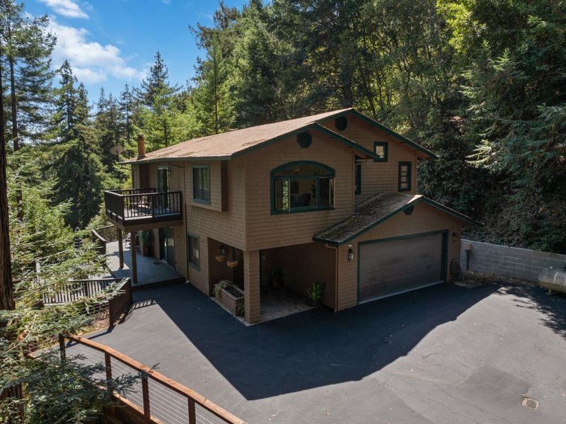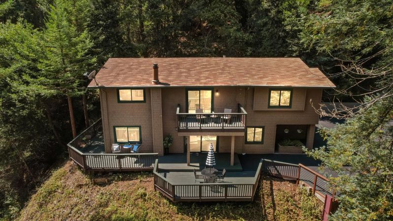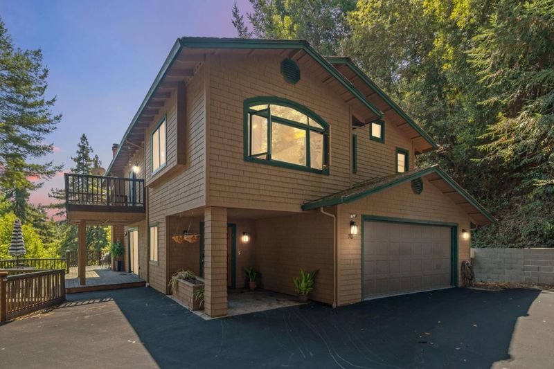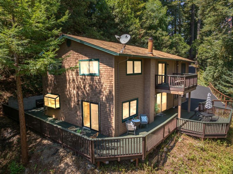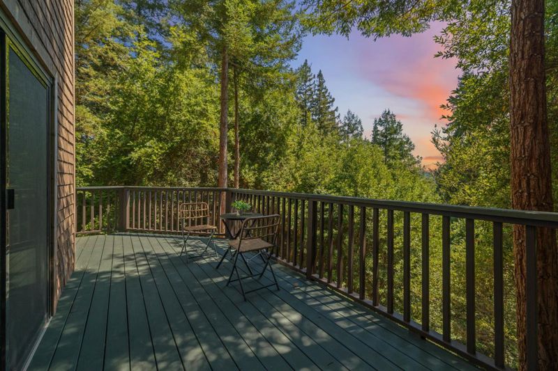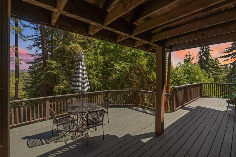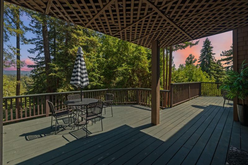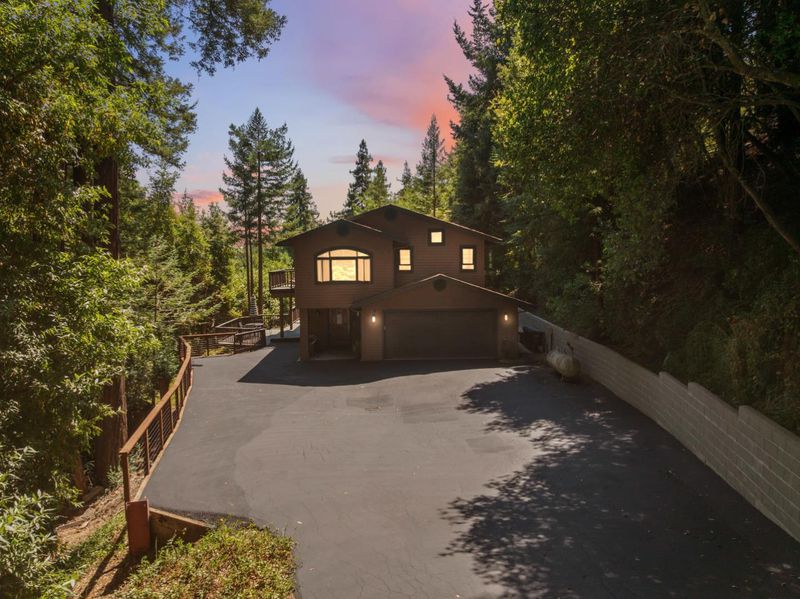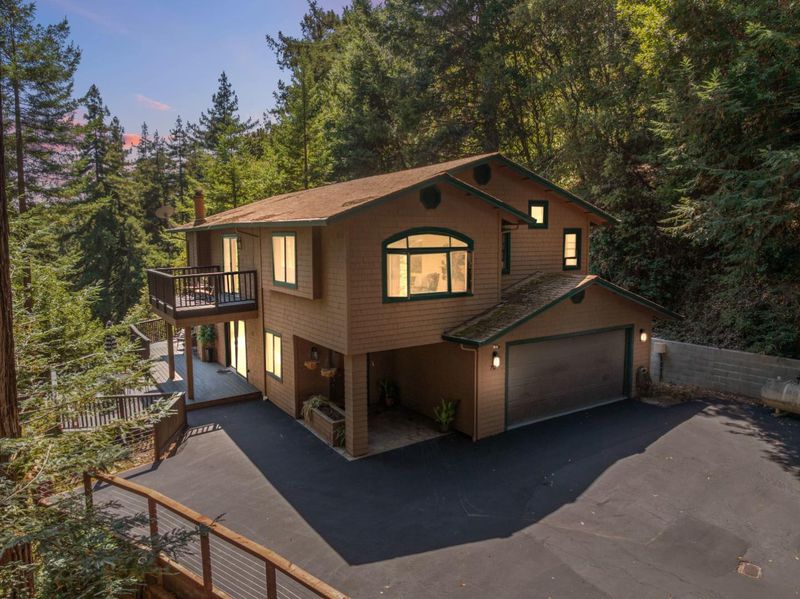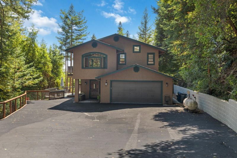 Situated on just over two acres in the beautiful Santa Cruz Mountains, this 2,400 sq. ft. home offers 3 bedrooms, 2.5 bathrooms, and a lifestyle of elegance surrounded by nature and great views. Recently refreshed with new interior paint, light fixtures, and an epoxied garage floor, the home is fully turnkey with thoughtful updates throughout. The chef's kitchen features refinished cabinetry, sleek countertops, and a gas cooktop, ideal for preparing gourmet meals to enjoy al fresco on the expansive deck, where sweeping mountain vistas provide a breathtaking backdrop. Inside, the living room is defined by a stately wood-burning fireplace, creating an inviting atmosphere for both intimate evenings and sophisticated gatherings. The primary suite is a true sanctuary, offering generous closets and a serene space to unwind at the end of the day. A versatile bonus room enhances the home's appeal, perfectly suited for a private office, fitness studio, or creative lounge. Offering privacy without sacrificing convenience, this luxurious mountain residence is only minutes from boutique markets, charming shops, world-class outdoor recreation, and direct access to Highway 17.