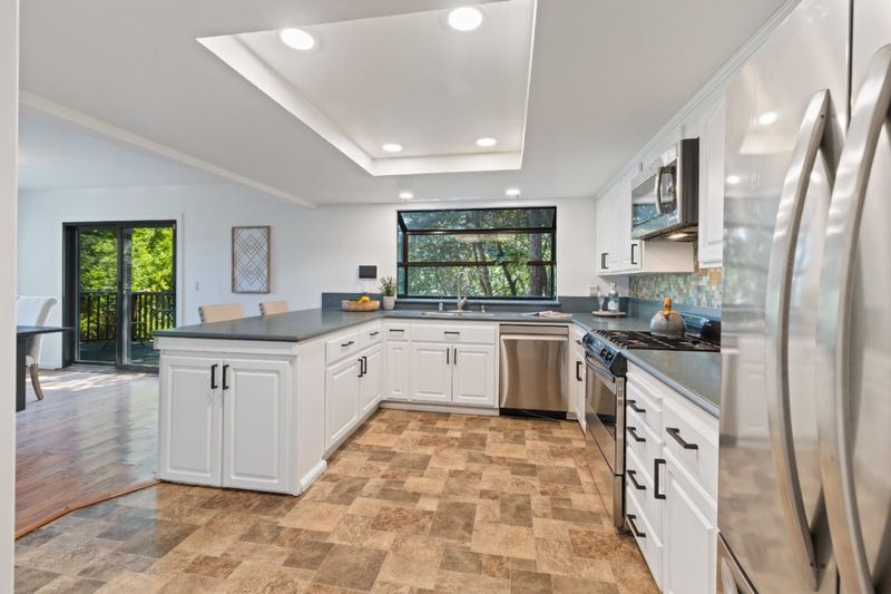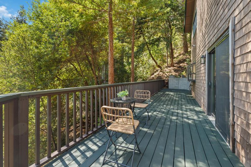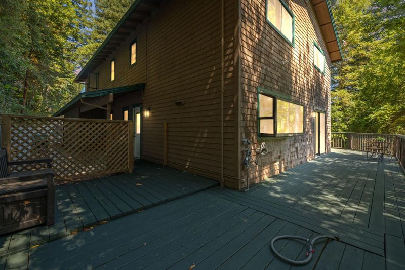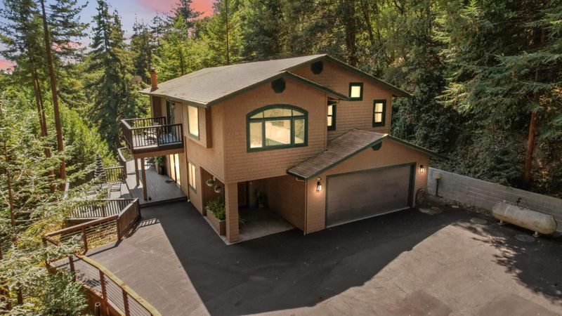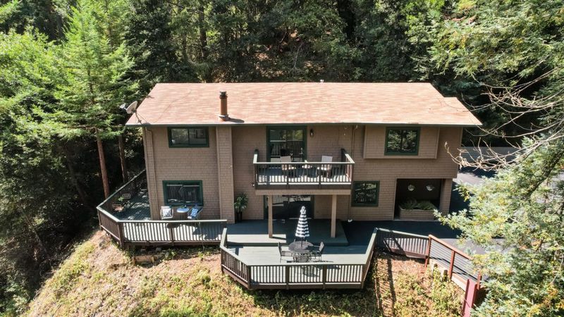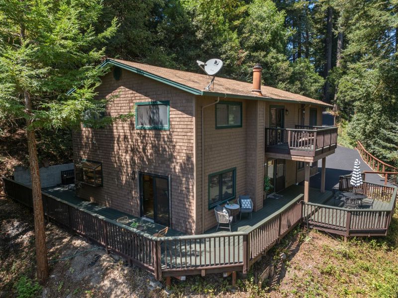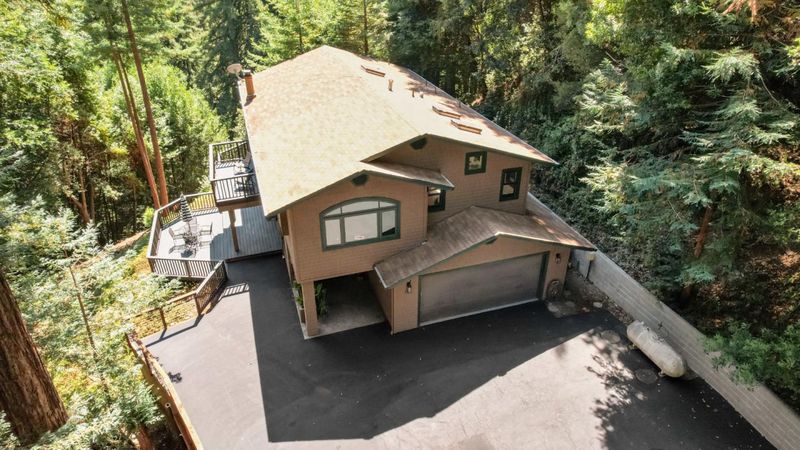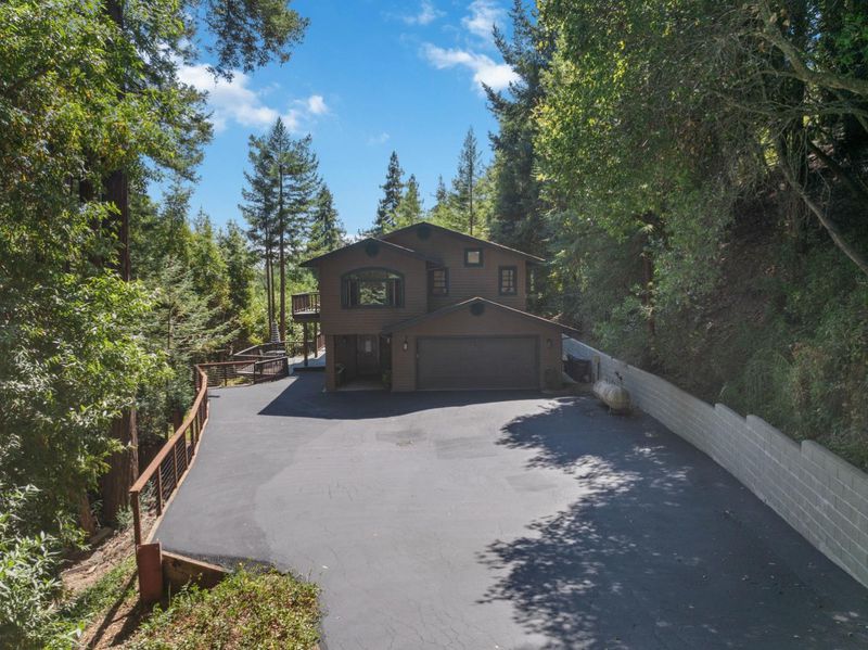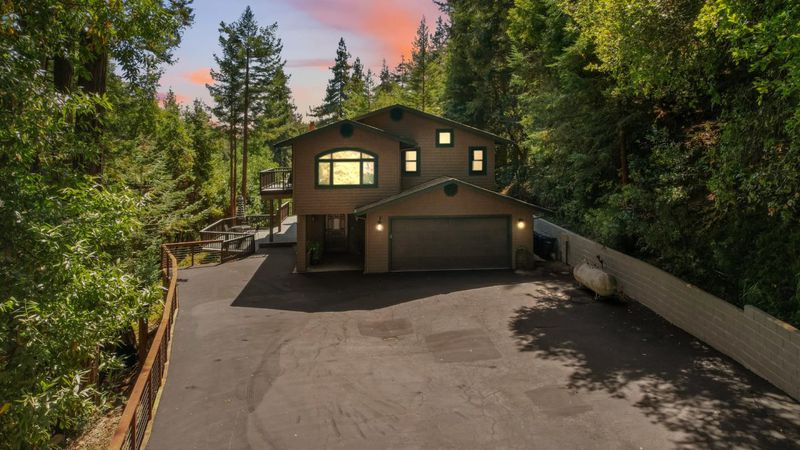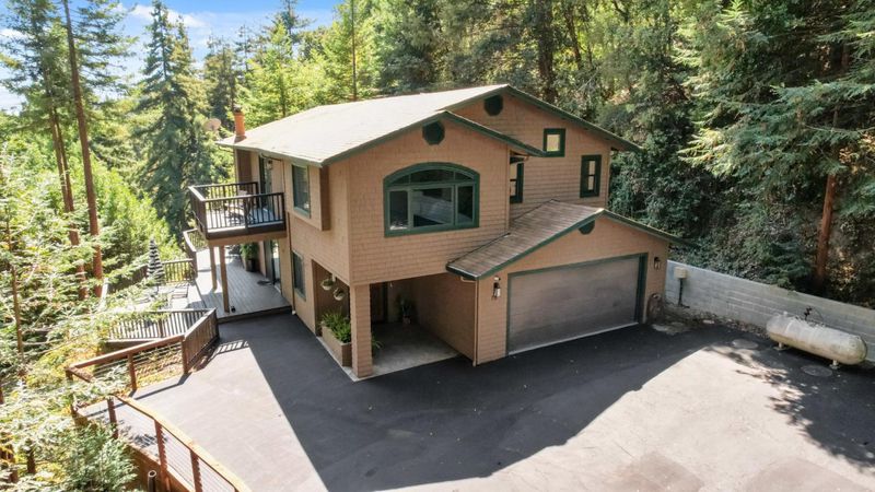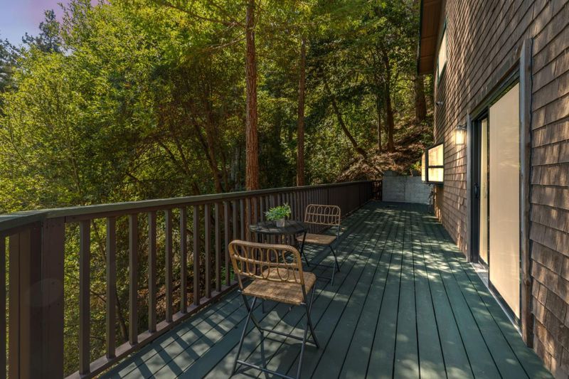 Situated on just over two acres in the beautiful Santa Cruz Mountains, this 2,400 sq. ft. home offers 3 bedrooms, 2.5 bathrooms, and a lifestyle of elegance surrounded by nature and great views. Recently refreshed with new interior paint, light fixtures, and an epoxied garage floor, the home is fully turnkey with thoughtful updates throughout. The chef's kitchen features refinished cabinetry, sleek countertops, and a gas cooktop, ideal for preparing gourmet meals to enjoy al fresco on the expansive deck, where sweeping mountain vistas provide a breathtaking backdrop. Inside, the living room is defined by a stately wood-burning fireplace, creating an inviting atmosphere for both intimate evenings and sophisticated gatherings. The primary suite is a true sanctuary, offering generous closets and a serene space to unwind at the end of the day. A versatile bonus room enhances the home's appeal, perfectly suited for a private office, fitness studio, or creative lounge. Offering privacy without sacrificing convenience, this luxurious mountain residence is only minutes from boutique markets, charming shops, world-class outdoor recreation, and direct access to Highway 17.