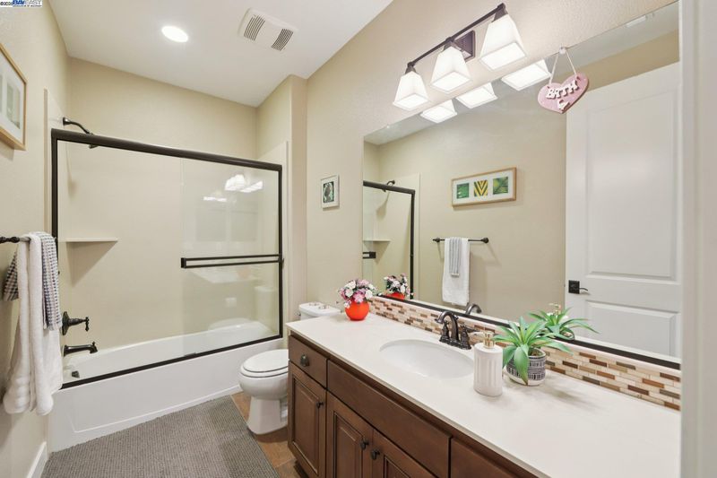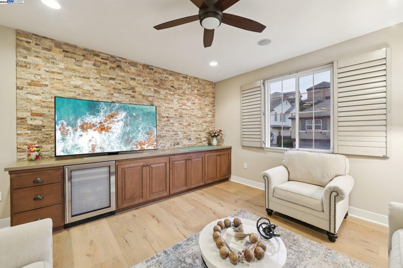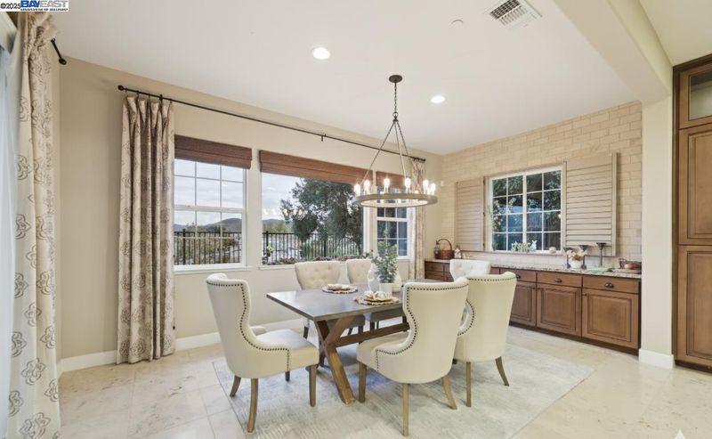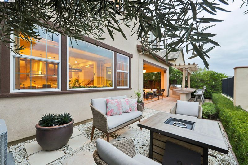 Stunning former model home with panoramic hill views from both levels and nearly $300K in upgrades on a premium view lot. Interior features include hardwood and stone tile floors, French maple cabinetry, beamed ceilings, built-ins, stone accents, wooden shutters, and surround-sound prewire. The gourmet kitchen offers ceiling-height cabinets, a large island, Thermador stainless steel appliances, a 48" range, and pot filler. The great room opens to the outdoor living area through an expandable glass wall for seamless indoor-outdoor flow. A first-floor bedroom with a full bath provides flexibility for guests or multigenerational living. The professionally finished backyard includes a covered tile patio, faux beams with pendant lighting, built-in KitchenAid BBQ with seating, and a gas fire pit, all overlooking rolling hills. Located near highly rated schools: John Green Elementary, Fallon Middle, and Emerald High. This home combines luxury finishes, modern design, and exceptional views throughout.