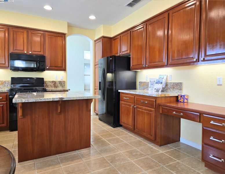 - Dishwasher, Gas Range, Plumbed For Ice Maker, Microwave, Refrigerator, Self Cleaning Oven, Dryer, Washer, Gas Water Heater, Breakfast Bar, Stone Counters, Eat-in Kitchen, Disposal, Gas Range/Cooktop, Ice Maker Hookup, Kitchen Island, Self-Cleaning Oven