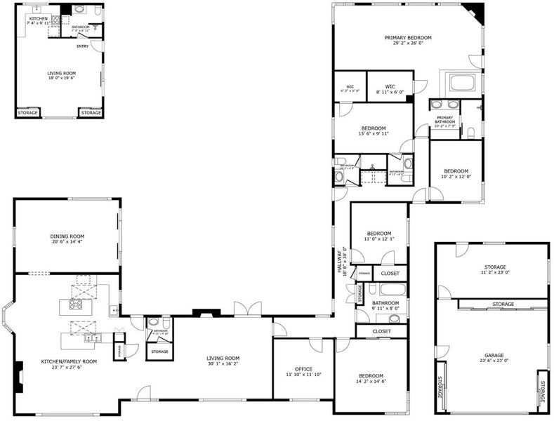 Welcome to 19661 Saratoga-Los Gatos Road a private, single-story home in Saratoga, ideally situated on an expansive flat lot with plenty of room for expansion. With its large circular driveway and setback the property is insulated from the main street. The backyard, complete with a separate guest house, spacious patio, and sparkling pool, is perfect for gatherings. The main home features five bedrooms, three full bathrooms, and two convenient powder rooms. All living areas are filled with natural light, thanks to large windows throughout. The gourmet kitchen, outfitted with white cabinetry and granite countertops, comes fully equipped with top-of-the-line appliances and multiple dining areas. The outdoor space is an entertainers dream, offering ample room to relax and host around the pool and outdoor kitchen. Conveniently located near commuter routes including Highway 9, Highway 85, and Quito/Lawrence Expressway. Just a short drive to downtown Saratoga and Los Gatos, where youll find fine dining and boutique shopping. Also nearby is the Saturday morning Farmers' Market at West Valley College. Located within the award-winning Saratoga school district.