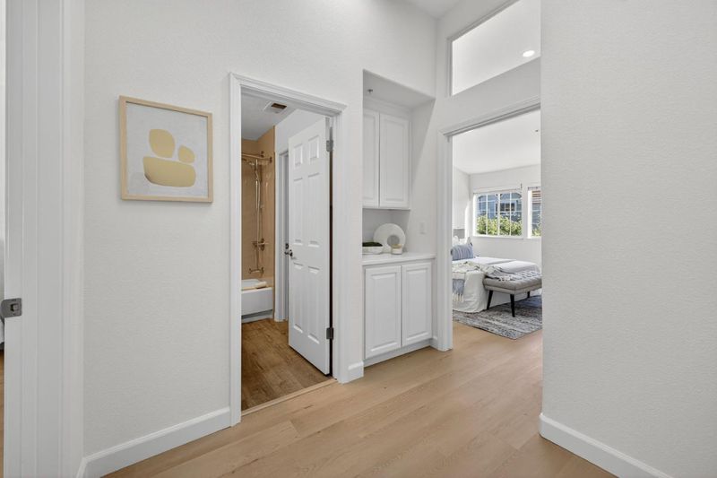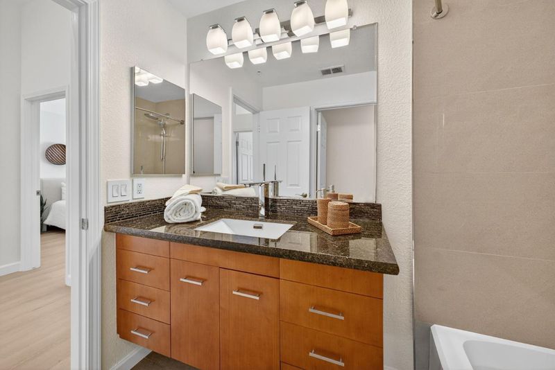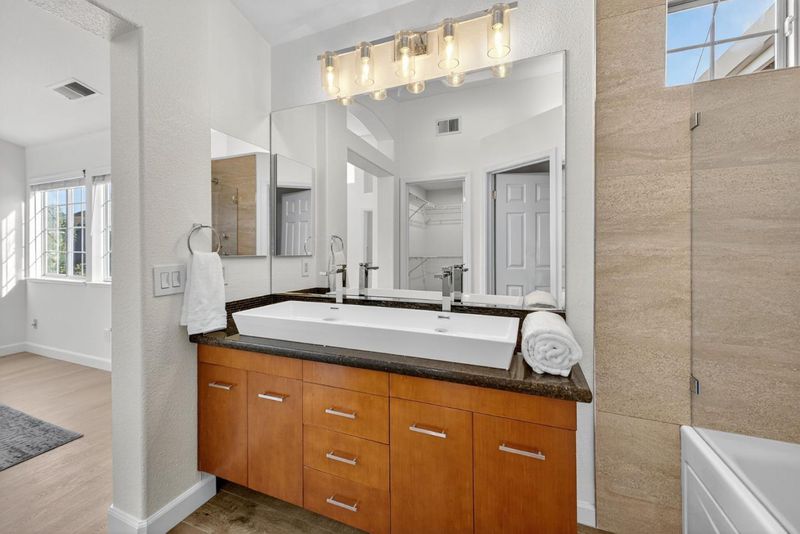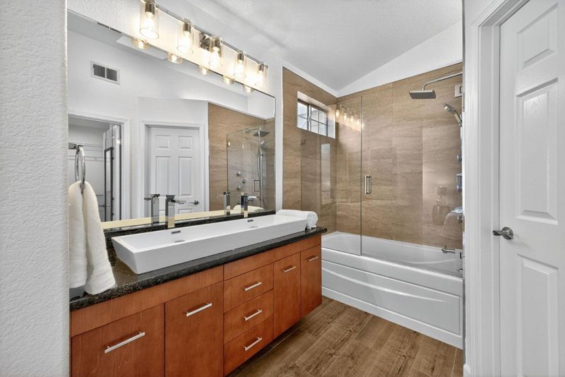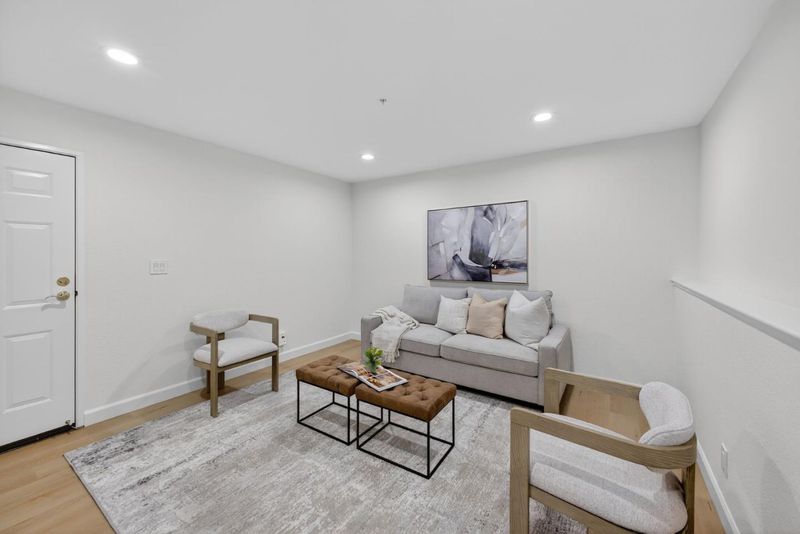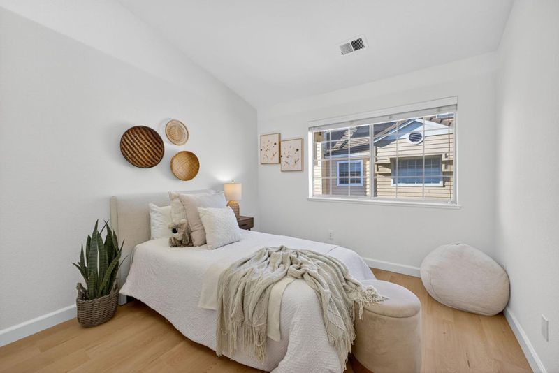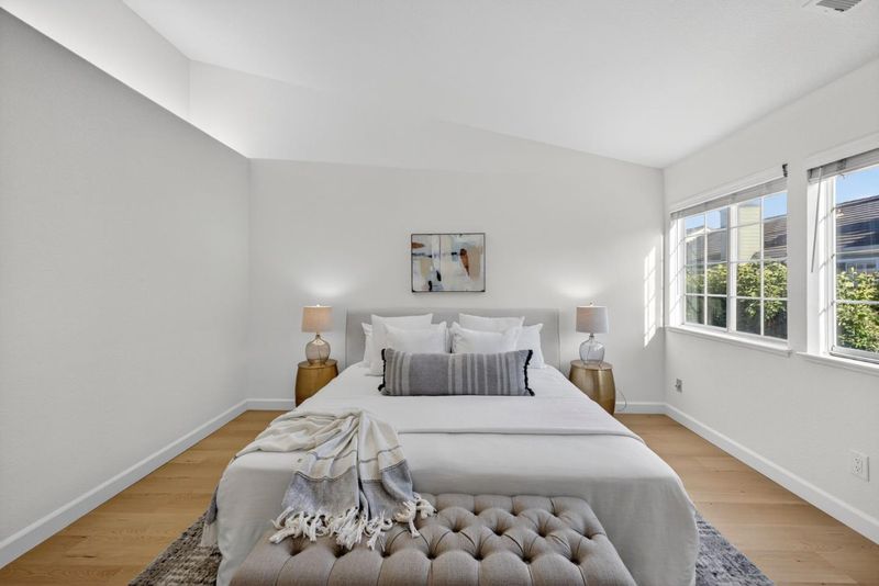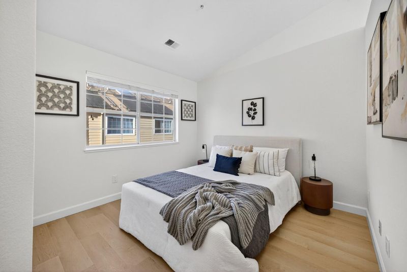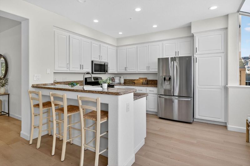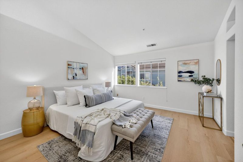 Welcome to 1168 La Rochelle Terrace Unit B, situated in Sunnyvale's highly desirable Traditions community, designed for comfort, tranquility, and convenience. This beautifully remodeled Townhouse features 3 beds, 2.5 baths, 1,923 square feet of living space and is filled with abundant natural light streaming through the large windows and skylights. This stunning property has been remodeled with high end designer finishes. Additional upgrades include fresh interior paint throughout, new floors, and recessed lighting. Enjoy the open concept living area with two separate private balconies, perfect for relaxing and entertaining. Retreat to the oversized primary suite featuring a walk-in closet, dual sinks, and shower over tub. Two additional generously sized bedrooms, plus a versatile large bonus room downstairs that can be used as an office, 4th bedroom, game room, or additional living space to host friends and family. The HOA covers water, garbage, earthquake insurance, pool, spa, & more. Prime location just a short walk to Seven Seas Park, VTA, grocery stores & local cafes. Minutes to Downtown Sunnyvale with great shopping, dining & entertainment. Excellent access to local transit, freeways, and major high tech companies. A rare opportunity in a peaceful, tree-lined community!