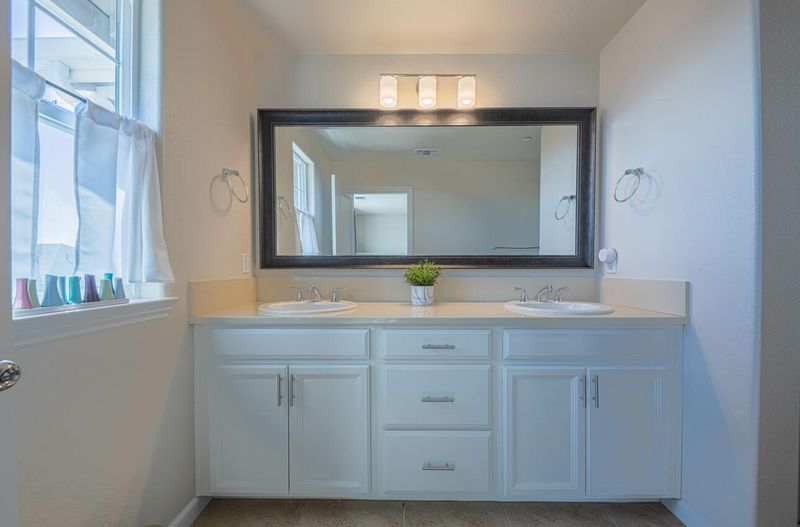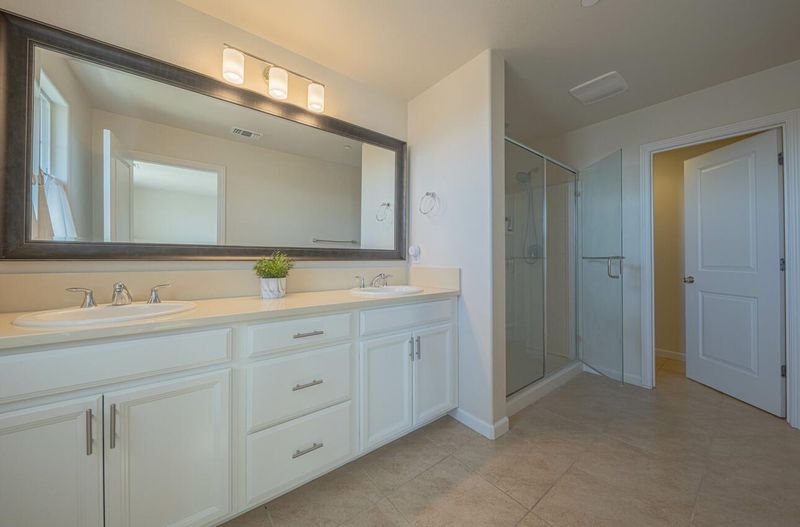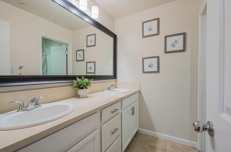 - Double Sinks, Half on Ground Floor, Primary - Stall Shower(s), Shower over Tub - 1, Solid Surface, Tile
