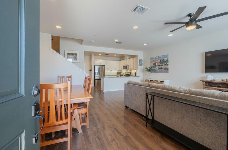 Welcome to this exceptional, turnkey townhouse in the highly desirable East Garrison Community! This beautifully appointed and spacious home features brand new wide plank flooring throughout the downstairs with an open great room floor plan, and three generously sized bedrooms upstairs. The kitchen features granite counter tops and stainless steel appliances and flows seamlessly to the large living room and dining area. There is beautiful wide plank flooring upstairs with built-in cabinetry in the hall area, a separate laundry room, a huge primary suite with a large walk-in closet, ceiling fans, and double sinks in both of the upstairs bathrooms. There are tile floors in all of the bathrooms and the laundry room, a convenient and beautiful 1/2 bath downstairs, a pantry off of the kitchen, and an attached 2 car garage. The landscaping is meticulously maintained and there are several beautiful community parks and playgrounds withing walking distance. The East Garrison Community is centrally located and within reach to so many of the local coastal recreational activities, making this a wonderful place to call home!