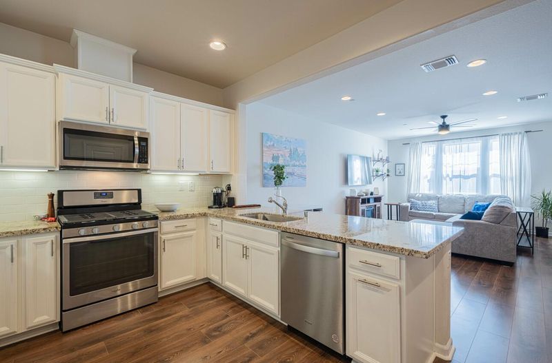 - Countertop - Granite, Dishwasher, Garbage Disposal, Microwave, Oven Range - Gas