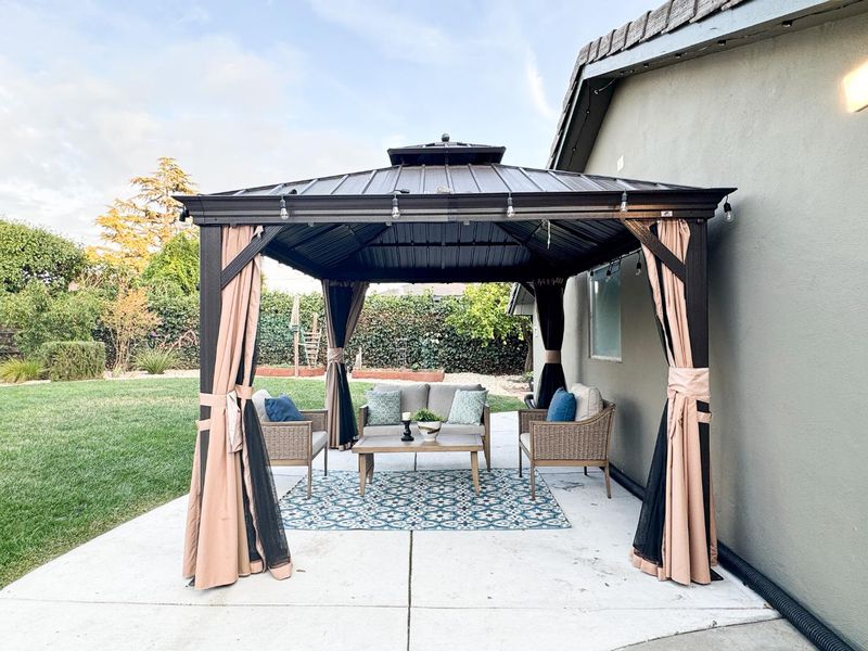 Welcome to this beautifully upgraded, smart-enabled home thoughtfully updated in 2023 for modern comfort, functionality and style. This spacious residence blends smart technology with quality enhancements throughout. Relax in the living room featuring elegant wood paneling and a projector and surround-sound-ready setup, creating an ideal space for movie nights. The upgraded kitchen features quartz countertops, soft-close cabinetry and stainless-steel appliances, perfect for both casual meals and entertaining. Multiple bedrooms provide comfort and style, each outfitted with remote-controlled shades, smart lighting and built-in organizers. The primary suite is a retreat with a spa-inspired bathroom and private backyard access. Outside, unwind under the illuminated Purple Leaf gazebo or enjoy the spacious backyard with fruit trees, storage and a finished garage equipped with a Tesla charger. Located minutes from Fremont BART, Lake Elizabeth, Central Park, excellent schools and vibrant shopping and dining, this home blends convenience with luxury in a coveted neighborhood. It's a must see.