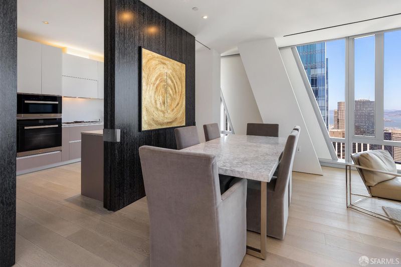 One of only 55 exceptional homes designed by the legendary ODADA, Residence #58A offers northern and eastern views of the Bay, skyline, and Marin from its corner location. This 2-bed + office layout combines luxury and functionality in a sophisticated living space with 9'6 ceilings and features globally sourced Arabescato Corchia Italian marble, Valcucine cabinetry, and fumed French oak floors. The entry boasts Paldao wood doors framed in Calacatta Carrara marble while the kitchen is a chef's dream with Brazilian Macaubas quartzite countertops, Valcucine glass cabinets, and wine storage. The primary bath features honed Arabescato Corchia marble, radiant-heated floors, and dual vanities. Additional luxuries include Lutron controls, customized storage, and custom oak corner media cabinet. At 181 Fremont, five-star service is a daily standard with the concierge team, valet, and lobby hosts ensuring hotel-caliber experiences. The 52nd-floor amenities level offers a resident lounge, wrap-around terrace, fitness center, bar and catering center, library, and conference room. Located in the heart of the technology and financial districts, 181 Fremont is moments from the Transbay Terminal & Rooftop Park, the Embarcadero, museum district, and Union Square.