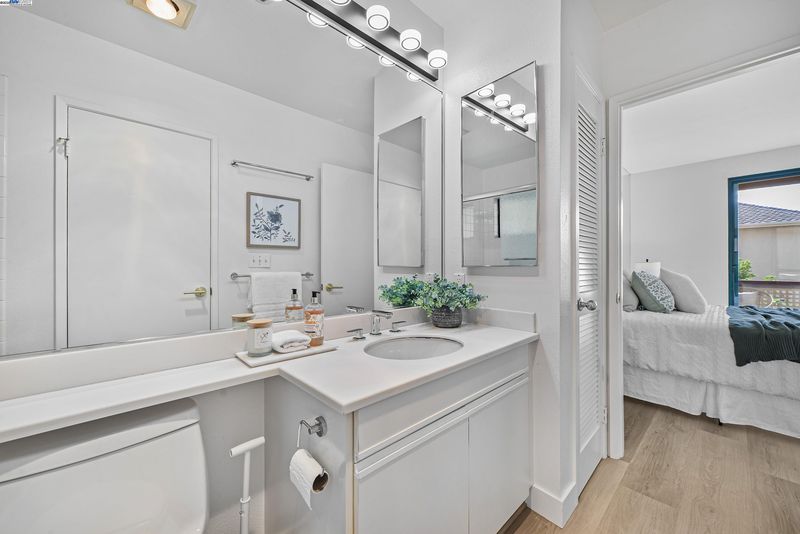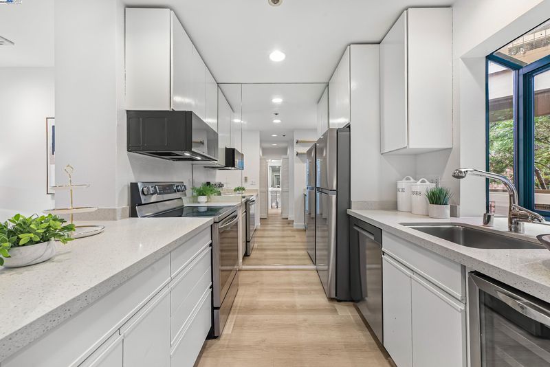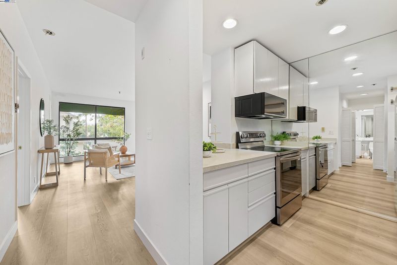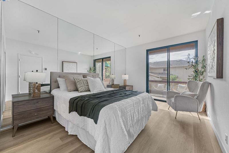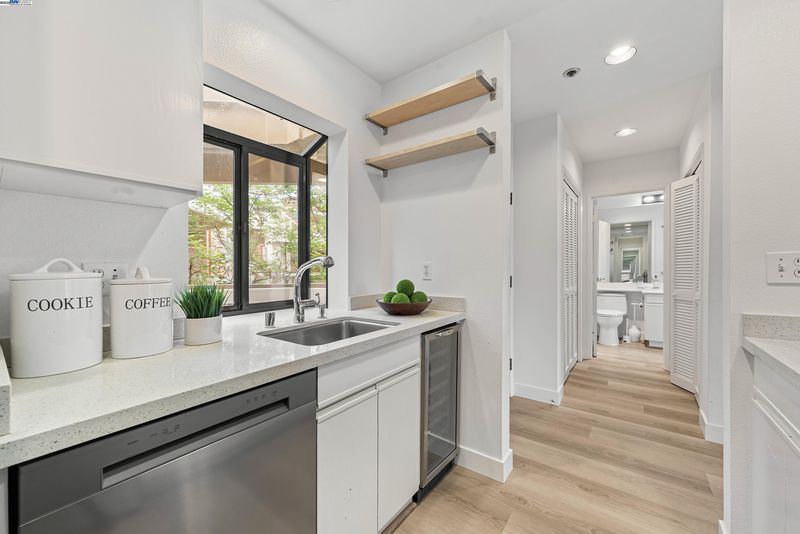 Escape into the hidden, resort-like community of the award-winning Palo Alto Redwoods. Just a short walk to shops and restaurants, this lushly landscaped enclave feels like a world away, surrounded by majestic redwoods and serene greenbelts. This one-bedroom, one-bath condo is quietly situated at the back of the complex, offering western hill views and a peaceful setting. The residence includes a dedicated storage unit and an assigned parking space only steps from the building’s elevator, leading directly to your front door. Inside, recent updates bring a modern touch, with HOA-approved hardwood-style LVT flooring, fresh interior paint, and a remodeled kitchen featuring quartz countertops, stainless steel appliances, and a wine refrigerator. The spacious living room is highlighted by soaring ceilings and large windows that flood the home with natural light. A generously sized bedroom with two closets, a private balcony, a full bathroom with an oversized vanity and linen storage, plus an in-unit washer and dryer, all add to the convenience and comfort. Community amenities include a pool, spa, sauna, and guest parking — creating a true retreat in the heart of Palo Alto.