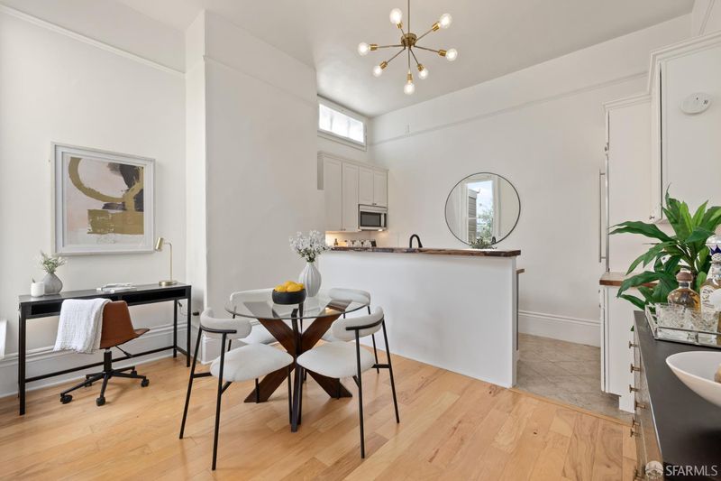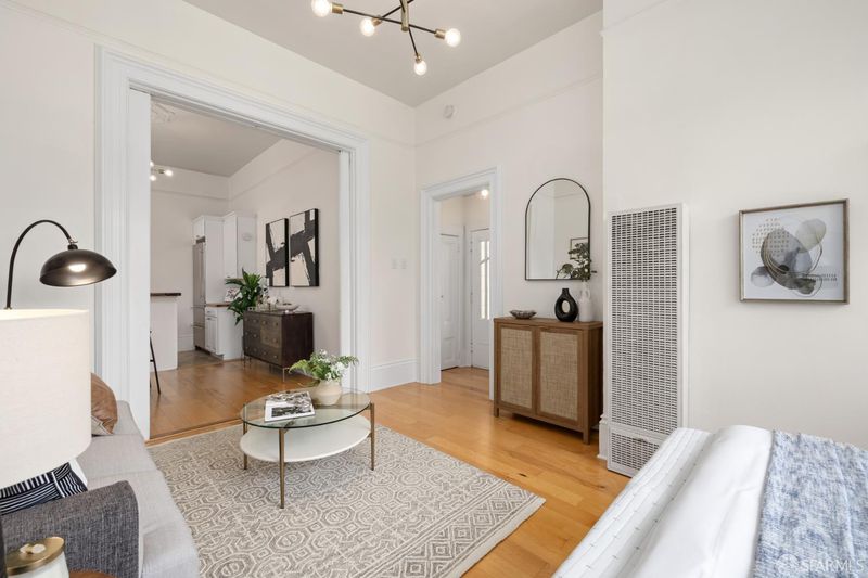 Experience the charm of Presidio Heights in this top-floor junior one-bedroom residence that combines historic character with modern updates. Featuring 12-foot ceilings and abundant natural light, the home feels airy and inviting. The thoughtfully designed layout includes hardwood floors throughout, a spacious walk-in closet, and a stylish kitchen with stainless steel appliances and butcher block countertops. A washer and dryer are conveniently in-unit, and the bathroom has been freshly updated to match the home's contemporary appeal. Perfect for first-time buyers or as a pied--terre, this home offers comfort and practicality with low HOA dues of just $350/month. Enjoy the best of city living in one of San Francisco's most desirable neighborhoods, with nearby cafes, boutiques, parks, and easy access to the Presidio and other parts of SF.