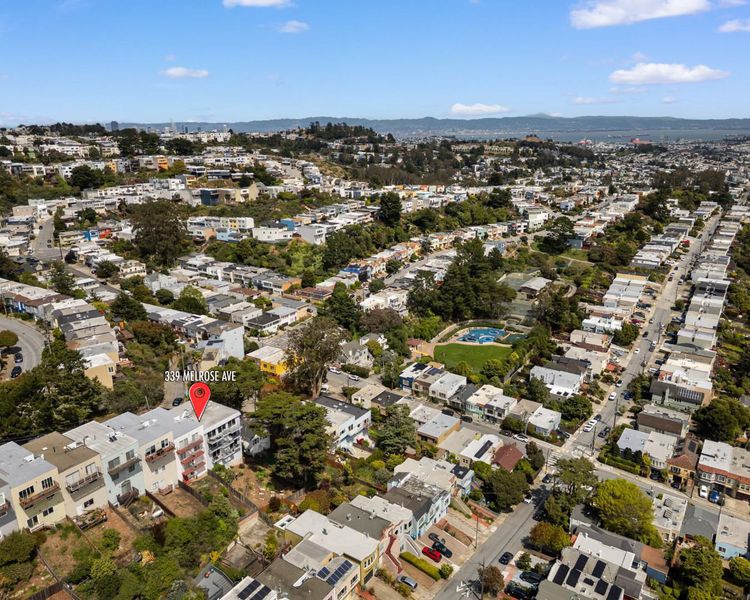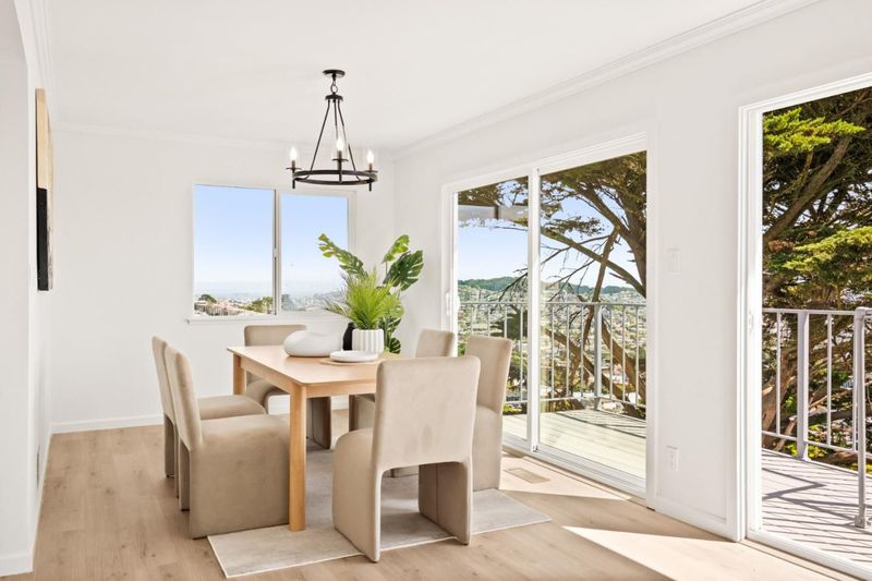 Perched on a hillside in San Francisco's Sunnyside neighborhood, 339 Melrose Ave offers sweeping Bay to ocean views and exceptional potential. This move in ready 3 level home features 5 bedrooms total and 3 baths, plus 2 kitchens w/a flexible layout suited for multigenerational living, renovation, or reimagining. The upper level showcases a spacious living area w/fireplace, large windows, and direct access to a view deck, filling the home w/natural light. The updated open stadium kitchen and dining area flow easily for everyday living and al fresco decked entertaining. The primary suite serves as a private retreat with an ensuite bath and walk-in closet, complemented by a second bedroom with its own walk-in closet, a hall bath, and a third bedroom or office. The 2 Lower Levels offer 2 additional bedrooms and a full kitchen, recreation space, along with an updated bath, a versatile space for guests, office, or extended living. The house stands on a lot that offers the possibility for terraced gardening, multiple patios, or playground areas. Generous sq ft & strong bones create a rare opportunity to customize a view property in a prime location. Sunnyside offers a quiet residential feel with easy access to Glen Park, Noe Valley, BART, and major commuter routes.