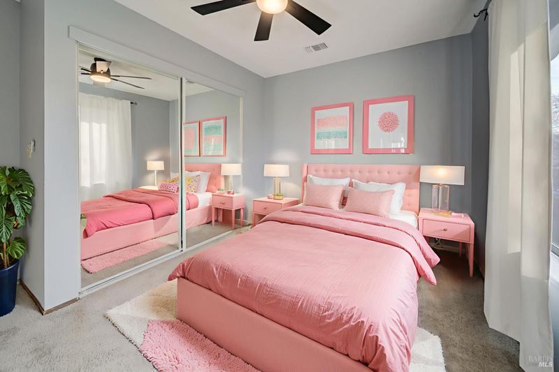 All Financing Welcome! FHA/VA/Conv/Cash -- 2827 Sunburst Drive is a Spacious, Stylish & Ideally Located home in Fairfield! This beautifully updated 2-bedroom, 2.5-bath townhome lives large with over 1,600 sq. ft. of flexible living space. The open layout features carpet flooring, and abundant natural light throughout. The bright eat-in kitchen includes a charming garden window, ample cabinetry, and direct access to a private front patio perfect for morning coffee. All appliances are included. Cozy up in the inviting living room with a classic brick fireplace & wet bar, or convert the downstairs den into a 3rd bedroom, office, or guest space. Upstairs, you'll find two generously sized bedrooms including a spacious primary suite with a sunken tub, walk-in closet, and separate shower. The upstairs laundry closet adds convenience, and the attached 2-car garage provides plenty of storage. Enjoy the serenity of no rear neighbors and the backyard features landscaping with drip system. Newer AC unit & new sewer line system were recently installed. Located in the desirable Sunrise Commons community with access to a pool, spa, & clubhouse. Just minutes from I-80, shopping, dining, and schools. This is easy living at its finest! Townhome considered A planned unit development!