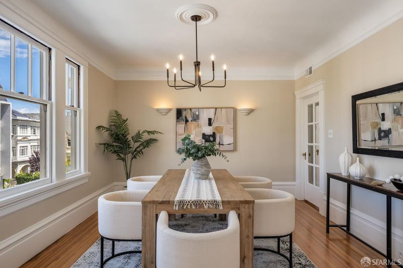 Set in a prime Pacific Heights location, this beautifully maintained residence offers approximately 2,000 square feet of well-proportioned living space, featuring three spacious and airy bedrooms and two full baths. Rich in period detail and filled with natural light, the home blends classic San Francisco charm with everyday comfort. Additional highlights include a shared patio, roof deck, and dedicated parking. The well-designed layout features spacious living and dining areas ideal for both everyday living and entertaining, complemented by a thoughtfully appointed kitchen. The home's large, airy bedrooms provide a sense of comfort and retreat, while the residence is further enhanced by multiple outdoor spaces, including access to a shared patio and a stunning roof deck with sweeping city viewsperfect for relaxing or hosting. Additional highlights include dedicated parking and a highly desirable location just moments from the shops and dining along Fillmore Street, Lafayette Park, and all that Pacific Heights has to offer.