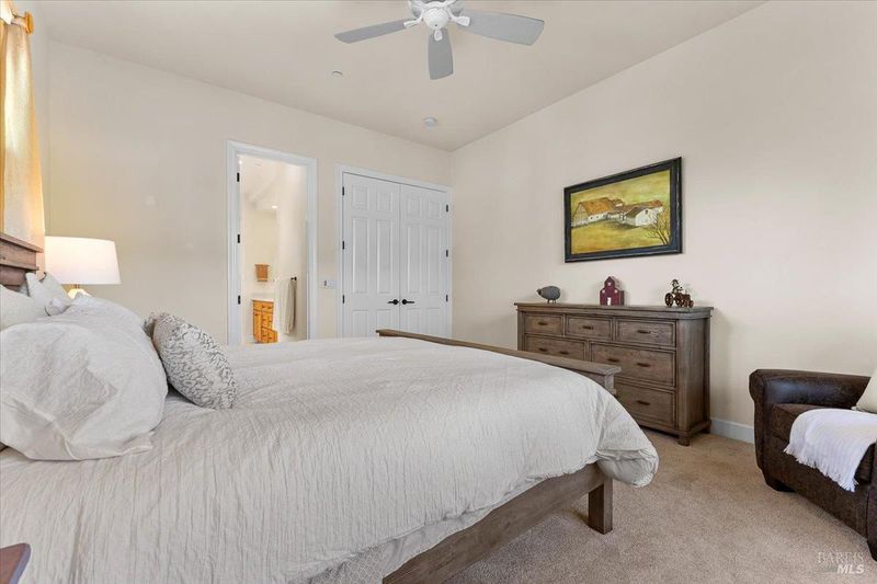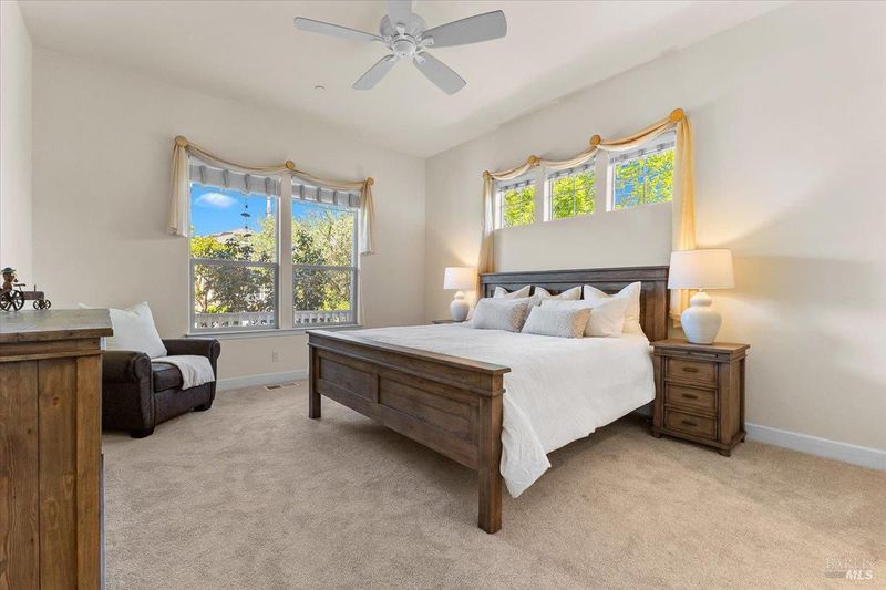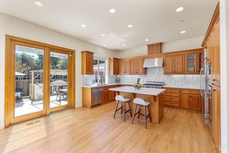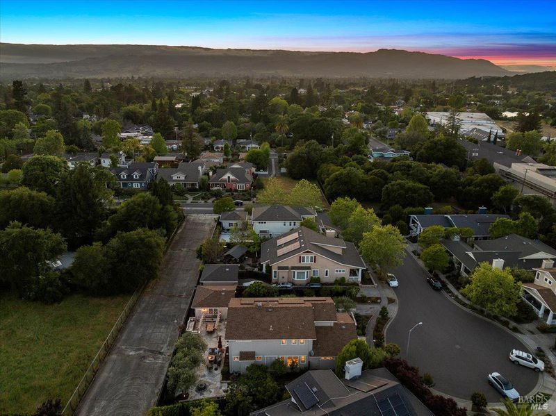 Elegant Eastside Sonoma Retreat - Walk to the Plaza, Live in Privacy! Nestled in Sonoma's highly sought after Eastside, this beautifully appointed 4-bedroom, 3.5-bathroom residence offers the perfect blend of convenience and tranquility, just a short stroll to the iconic Sonoma Plaza, yet tucked away on a peaceful private cul-de-sac. Step inside to discover a thoughtfully designed layout highlighted by soaring 10-foot ceilings and an abundance of natural light that fills every corner of the home. The spacious first floor primary suite serves as a serene retreat, featuring a recently remodeled bathroom with refined, modern finishes. At the heart of the home, a newly renovated kitchen is perfectly suited for entertaining, ideal for hosting unforgettable wine country gatherings with friends and family. Upstairs, three generously sized bedrooms and an additional family room offer flexible living space and privacy for guests or loved ones. Outdoors, the property transforms into a private oasis. A luxurious flagstone patio with a custom-built island sets the stage for alfresco dining, surrounded by a lush collection of olive and fruit trees that evoke the charm and romance of the Tuscan countryside. Gardening enthusiasts will appreciate the raised planter beds with integrated irrigation, perfect for cultivating fresh vegetables, herbs, or flowers. Modern efficiency meets timeless style with an EV-ready garage, solar panels, a tankless water heater, and dual-zone HVAC, ensuring comfort, sustainability, and ease of living. This exceptional property captures the essence of Sonoma living: walkable, private, and effortlessly elegant.