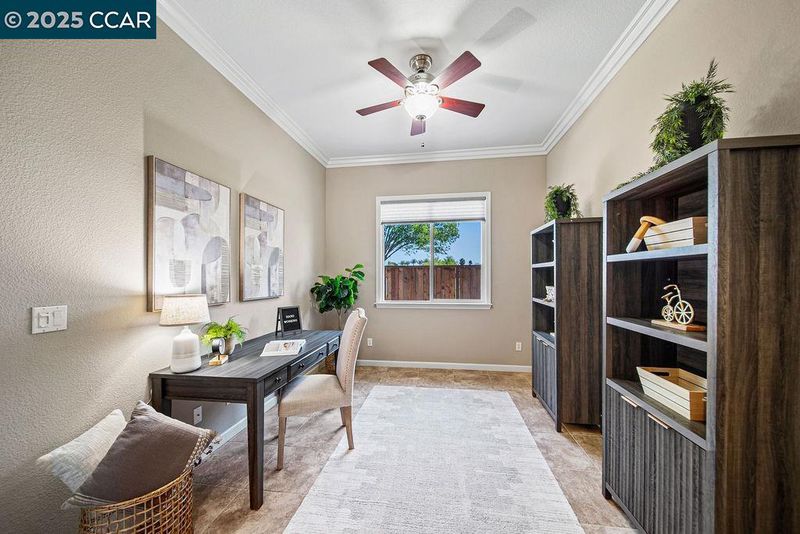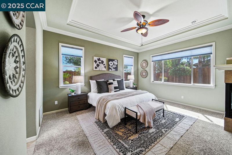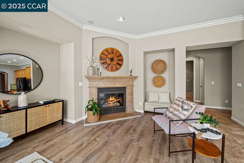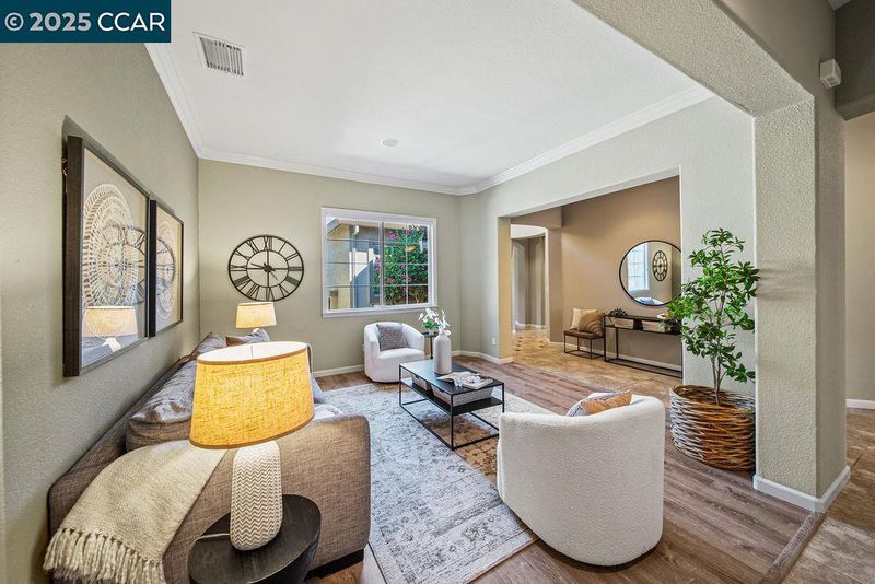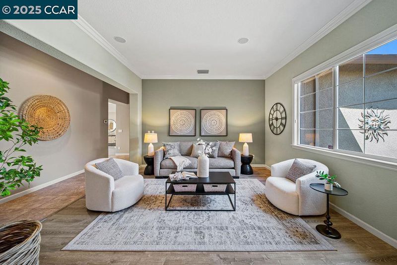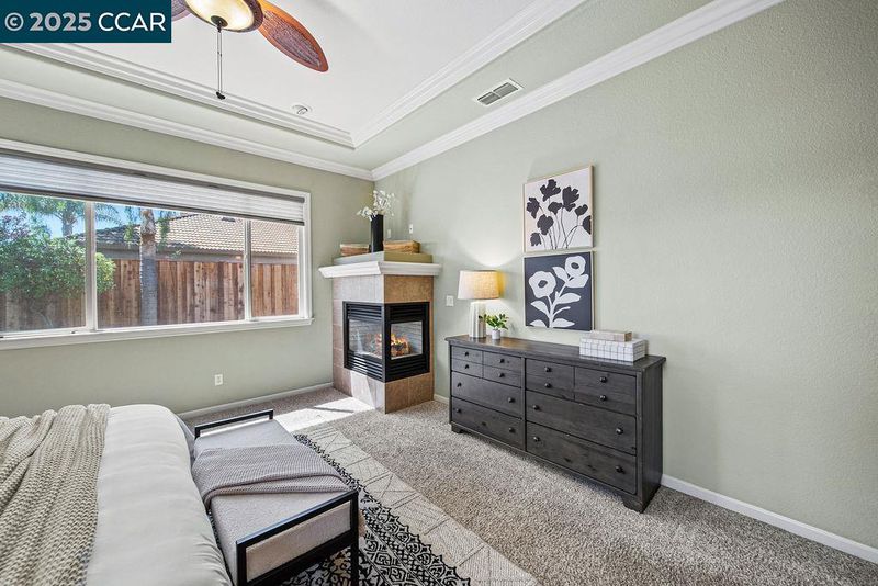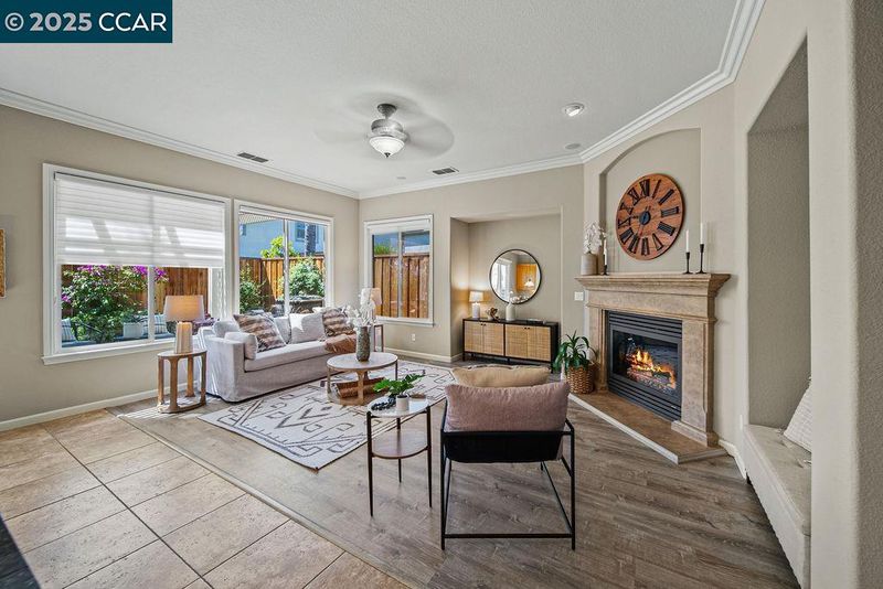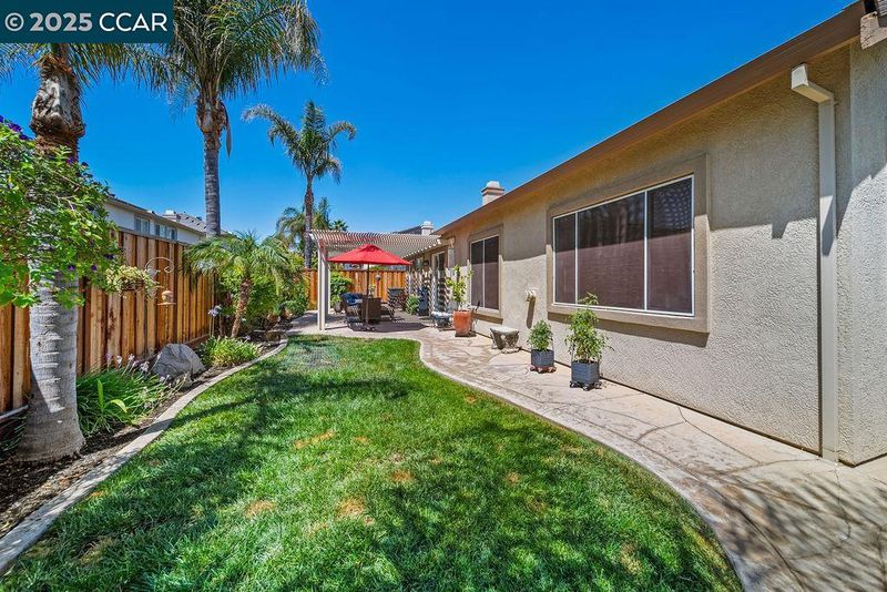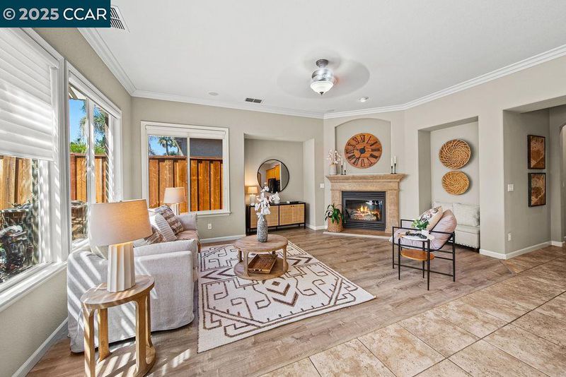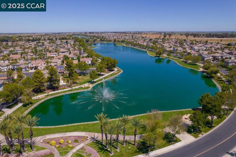 Nestled in the highly desirable Lakeshore gated community, this beautifully maintained 3-bedroom, 2.5-bathroom single-story home boasts a corner lot directly across from the lake. Step inside to a well-designed floor plan featuring generous living spaces, abundant natural light, and versatile areas perfect for relaxing and entertaining. Each bedroom offers privacy and comfort, including a primary suite with its own en-suite bathroom. The dedicated den provides a quiet workspace ideal for a home office. The tandem finished garage is perfect for parking your boat, trailer, collector car or additional storage. The true highlight of this home is its beautifully landscaped backyard, providing ample space for gatherings, barbecues, or simply unwinding in privacy. Some added features include upgraded tile and flooring, crown moulding throughout, whole house fan, custom window coverings, Alumawood lattice patio cover, PureFlo water conditioner, new fencing, newer exterior paint. As a resident of the Lakeshore community, you'll enjoy access to a scenic lake, BBQ area, community pool, guest parking, playground, picnic area and serene walking trail. Residents have the added benefit of a full time security gate.