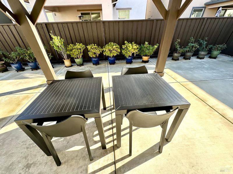 Welcom to your dream home in the Villages at Fairfield! Built in 2019, this gorgeous 1,817 sq. ft. move-in-ready home comes fully furnished and includes energy-efficient solar panels to help lower monthly bills. Featuring 3 bedrooms and 2.5 bathrooms, the home showcases modern marble flooring throughout most of the interior, elegant granite countertops, modern dark shaker cabinets, stainless steel appliances, recessed lighting, and a spacious walk-in pantry. The kitchen flows seamlessly into the living and dining areas, creating an ideal space for entertaining or relaxing with family. The large primary bedroom features a generous walk-in closet and a double-sink vanity. Fully turn-key, it comes with all newer furniture and appliances, including two beds, four sofas, a dinette set, TV, an outdoor gazebo, patio furniture, and potted plants. Enjoy a large concrete patio with a pergola and low-maintenance front and backyardperfect for play, relaxation, or hosting. Additional highlights include a tankless water heater and a prime location close to parks, shopping, wineries, the train station, golf courses, and Travis Air Force Base just minutes away, with easy access to I-80.