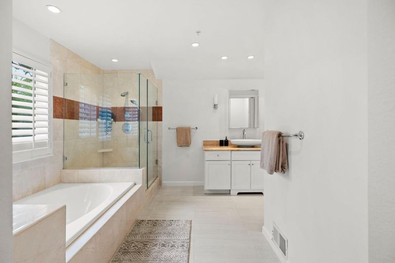 - Half on Ground Floor, Primary - Oversized Tub, Primary - Stall Shower(s), Tile, Tub in Primary Bedroom, Updated Bath