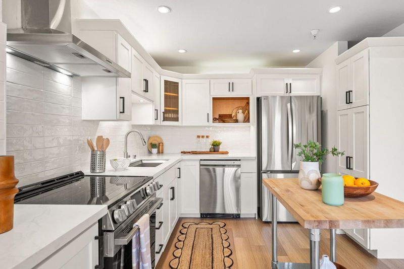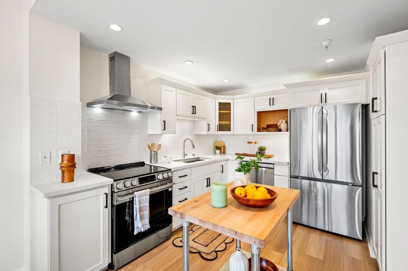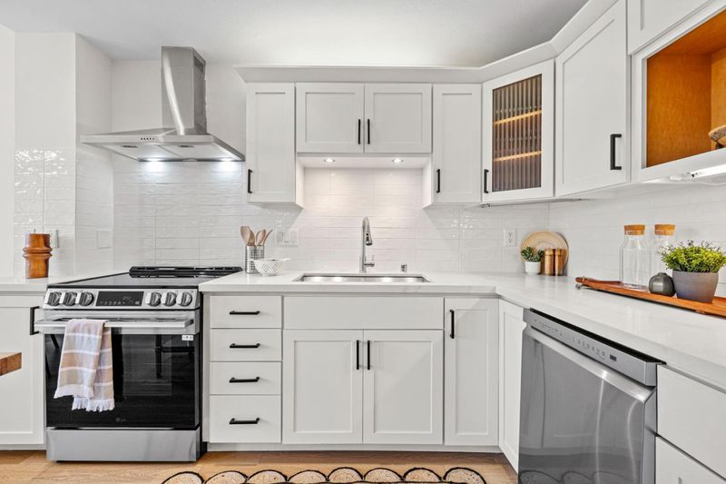 - Countertop - Quartz, Dishwasher, Garbage Disposal, Hood Over Range, Oven Range, Oven Range - Electric, Refrigerator