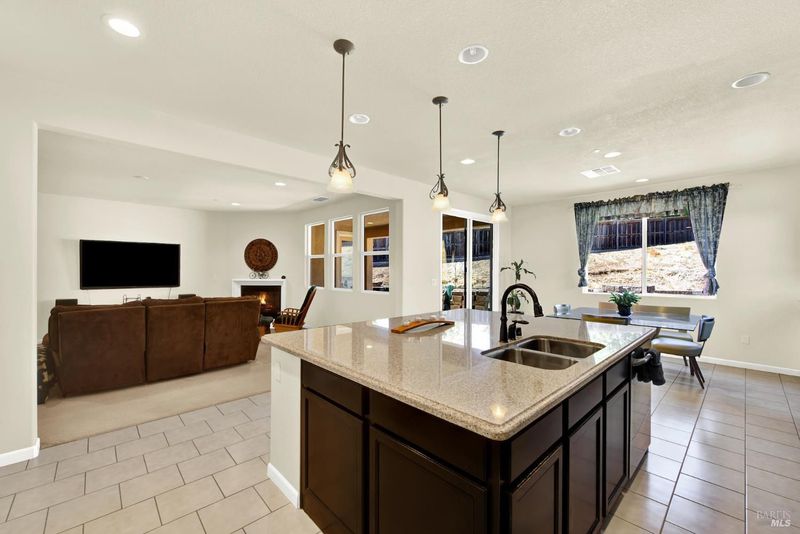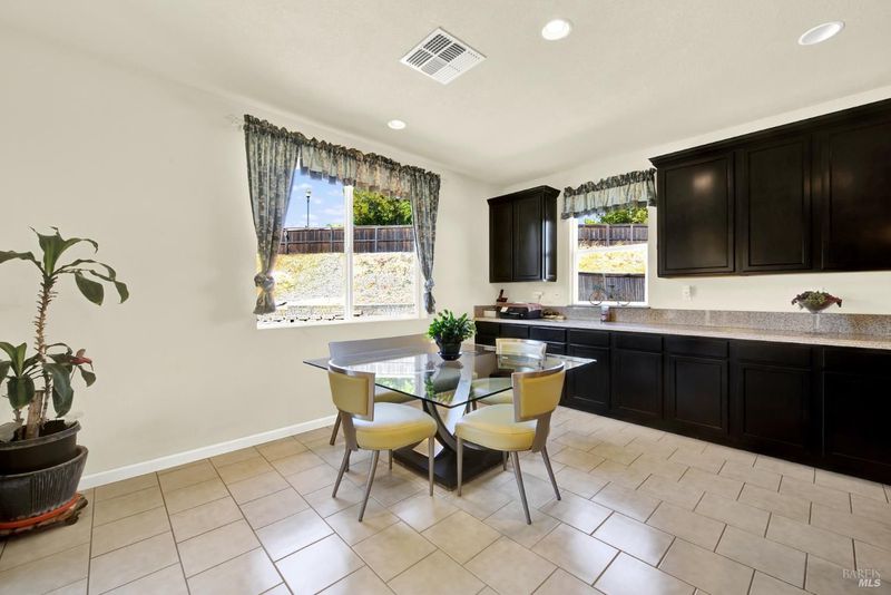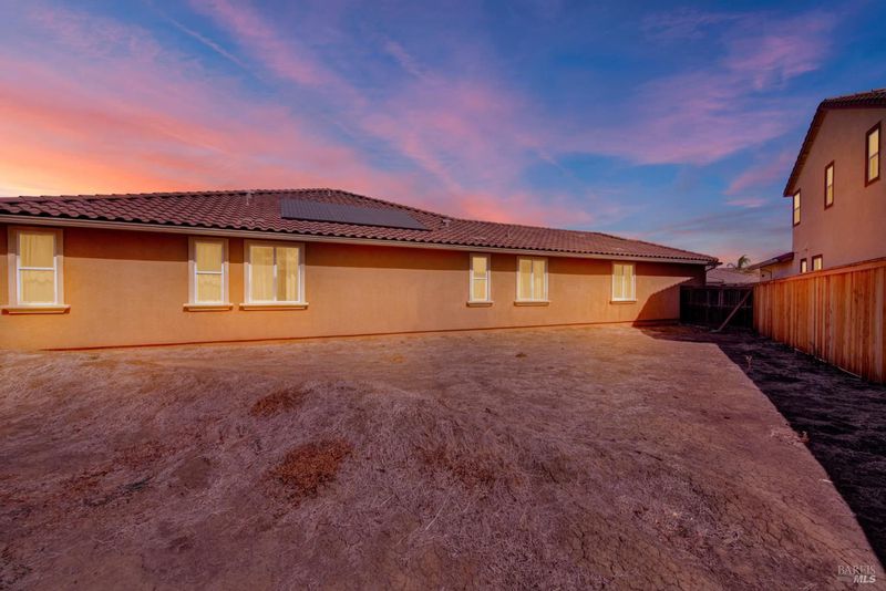 Spacious and inviting single-story home in the highly desirable Gold Ridge community, complete with OWNED solar! Situated on just over 1/3 acre, this 3-bedroom, 2.5-bath home plus den offers a thoughtful layout and plenty of room for the whole family. The open kitchen is the heart of the home and features stunning granite counters, abundant cabinetry, a large island, double ovens, stainless steel appliances, and two pantries-perfect for storage and entertaining. The primary suite is a private retreat with backyard access, dual sinks, a jetted tub, separate shower, and an oversized walk-in closet. Secondary bedrooms each include their own walk-in closets, and the spacious laundry room adds extra convenience with a sink, counters, and cabinetry. Enjoy the versatility of both a finished 1-car and 2-car garage, each with epoxy flooring. Outside, the expansive backyard offers a covered patio and endless potential to create your dream outdoor oasis. All this in a fantastic location close to Travis AFB, Amtrak, commuting routes, parks, walking trails, and within the sought-after Travis Unified School District.