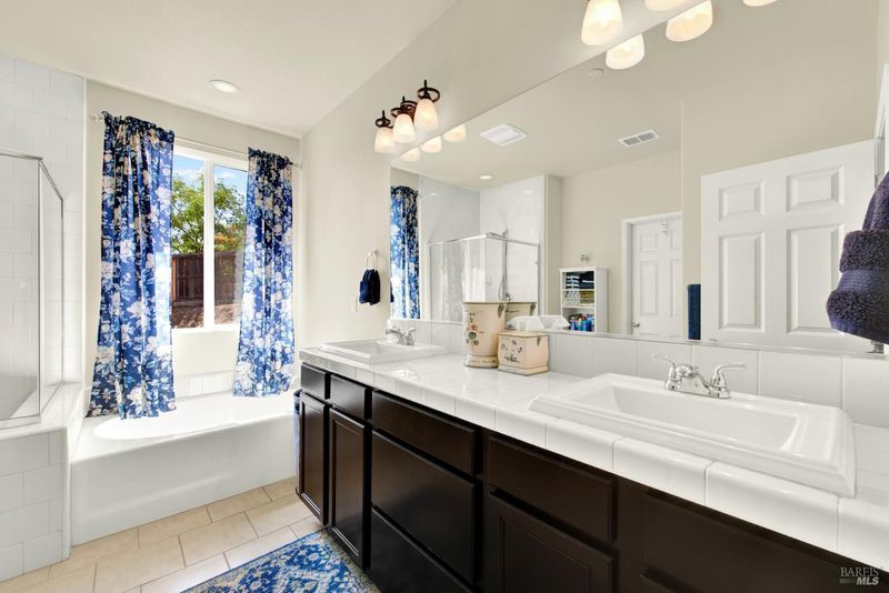- Double Sinks, Jetted Tub, Shower Stall(s), Walk-In Closet