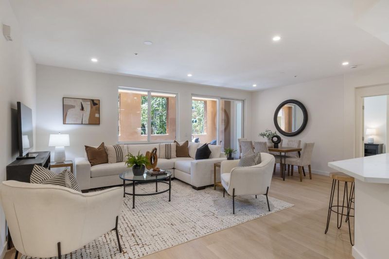 Experience modern urban living in this expansive 3rd-floor condo at Midtown Plaza, ideally situated in the heart of San Jose. Built in 2004, this stylish 2-bedroom, 2-bathroom home spans over 1,300 sq ft, featuring soaring high ceilings, an open-concept design, and recent upgrades like hardwood floors, recessed lighting, and a sleek kitchen with quartz countertops giving it that desirable "like new" feel. Enjoy generous bedrooms with large en-suite bathrooms, abundant storage, in-unit laundry, and a spacious balcony perfect for hosting friends. Beyond your door, the community offers fantastic amenities including a pool, spa, and gym, plus secured garage parking (spaces 36 + 37). With CalTrain, public transit, Whole Foods, shopping, and entertainment all within easy walking distance, this condo is perfect for those seeking a dynamic and convenient lifestyle.