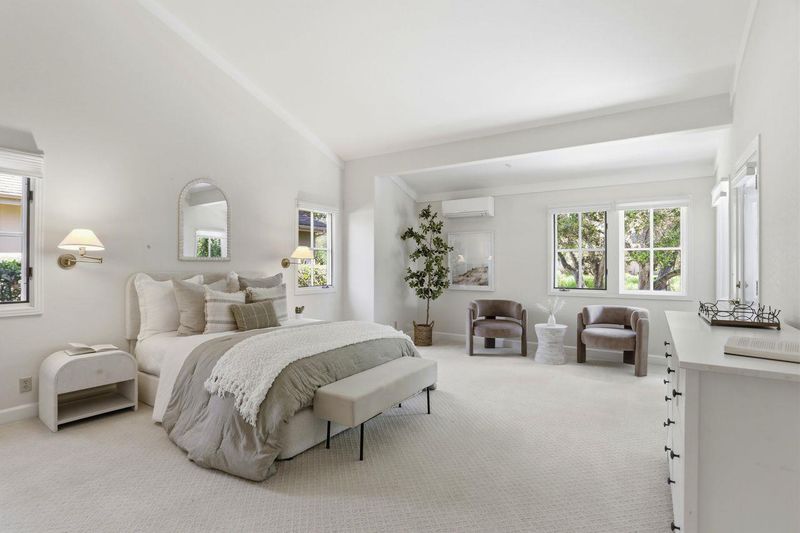 Welcome to your Hidden Oasis, Markham Ranch in Corral de Tierra of Salinas ~ This picturesque valley of rolling hills is a wonderful place to call home. This home has natural light throughout and is one of the best locations on Markham Lane! It's perfectly situated on a cul-de-sac and backs to a seasonal creek dotted with oaks - so peaceful. Handsome hardwood floors greet you as you enter the formal entryway, followed by the stunning living room with high ceilings, fireplace, built-in cabinetry and multiple French-style doors accessing the backyard. There's also a formal dining room with classic wet bar, gorgeous kitchen w/ adjacent breakfast nook and family room with fireplace - and that's just the beginning! The bedroom wing has three bedrooms which includes a primary bedroom suite with a truly spacious bathroom with two sinks, deep tub, and walk-in closet. The other bedrooms both have a glass door leading to their own private yard and a shared central bathroom. Let's jump outside to the backyard from one of the eight sets of glass doors! There is a huge wraparound deck overlooking the oak studded seasonal creek. You will also fall in love with the development's setting, pool, tennis courts, club house and quaint trails for residents and guests. You will LOVE living here!