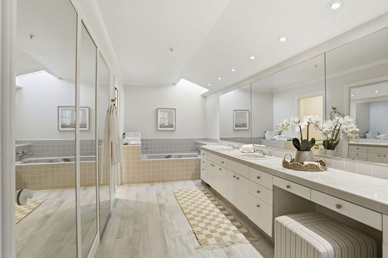 - Double Sinks, Primary - Oversized Tub, Primary - Stall Shower(s), Primary - Tub with Jets, Skylight, Stall Shower, Tile, Tub in Primary Bedroom