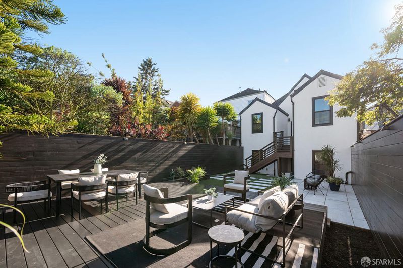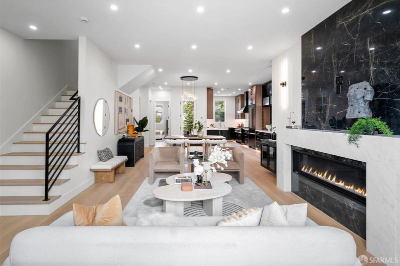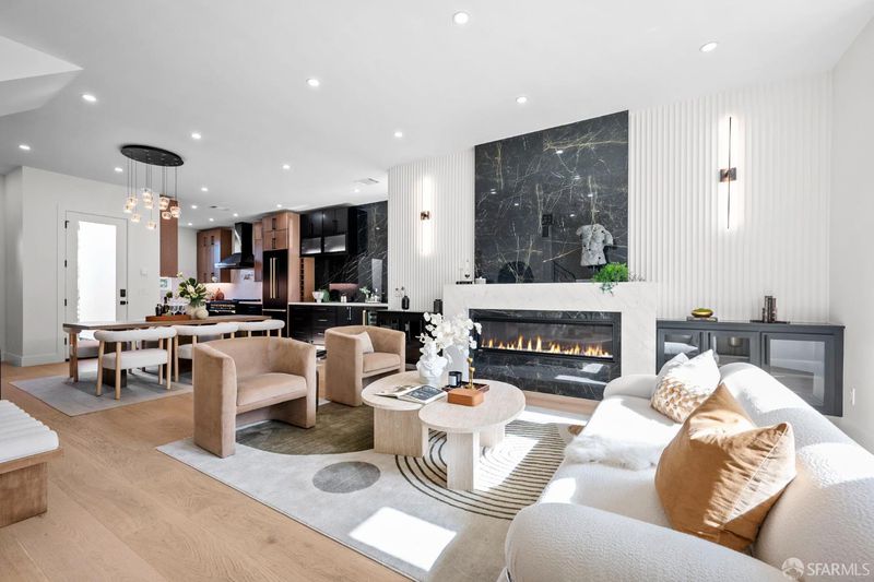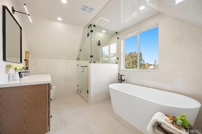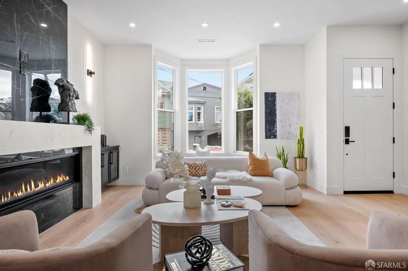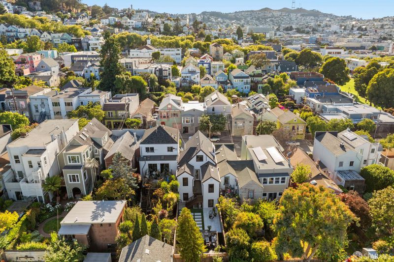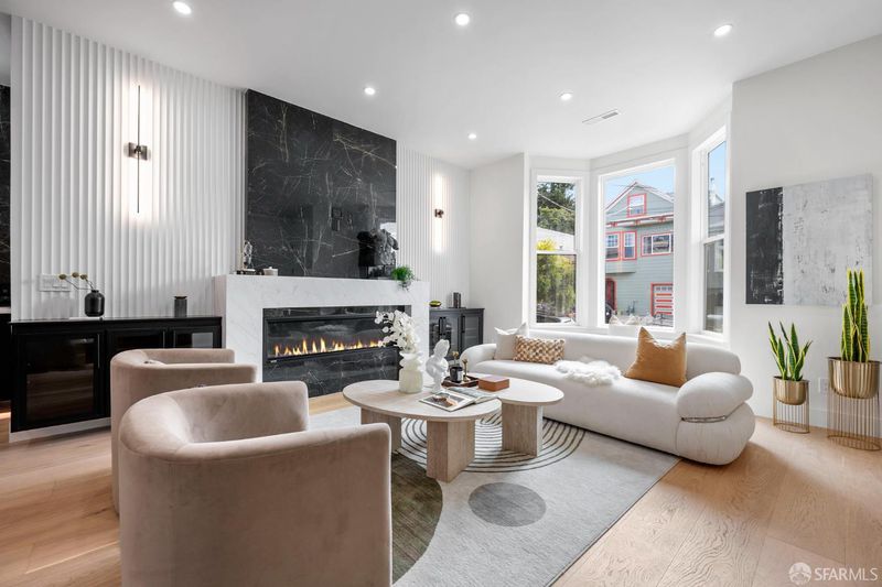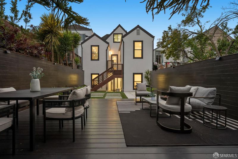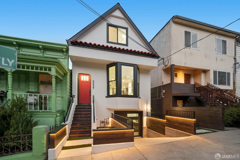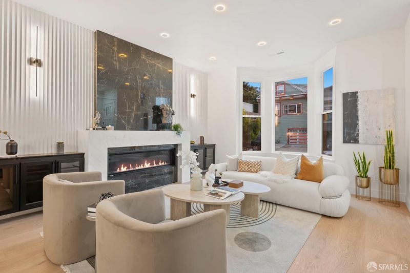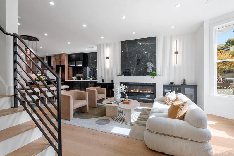 Situated on the north slope of Bernal Heights is an Edwardian style home with Spanish Revival influences. This down-to-the-studs renovation blends contemporary luxury with timeless San Francisco charm. Spanning 3 levels of elevated living, offering 4-beds, 4-baths with new foundation, roof, electrical, and plumbing. Main level features an open concept living with high ceilings, Calacatta quartz countertop, porcelain tiles, and a custom gas fireplace. A chef's kitchen and dining space is ideal for entertainment with ZLINE Autograph appliances, Spanish bathroom tiles, engineered hardwood floor, and a walkout deck overseeing a beautifully landscaped yard. A bedroom and a full bathroom provides flexibility for guests or office space completes this level. Connected by a custom staircase, upstairs you'll find a private primary suite offering plenty of closet space and storage, a soaking tub, and peekaboo views of downtown San Francisco. Downstairs offers 2-beds, 2-baths, laundry room, additional storage, 1-car garage, and media space that opens out to an oversized backyard oasis. Located just minutes from Precita Park Cafe, Restaurants, Bernal Heights Park Trail, Cortland Avenue Shops, major freeways, and tech shuttle access.