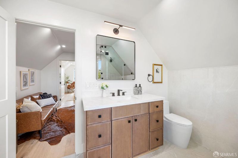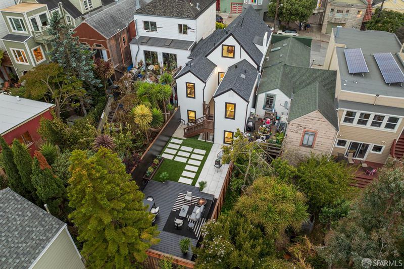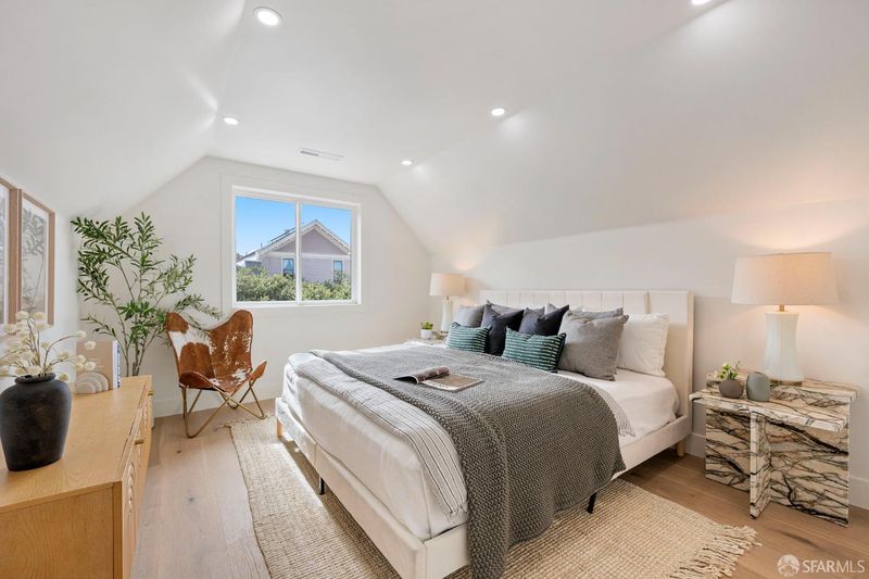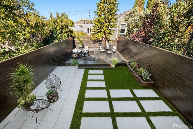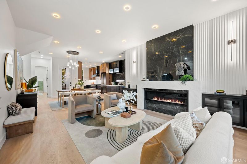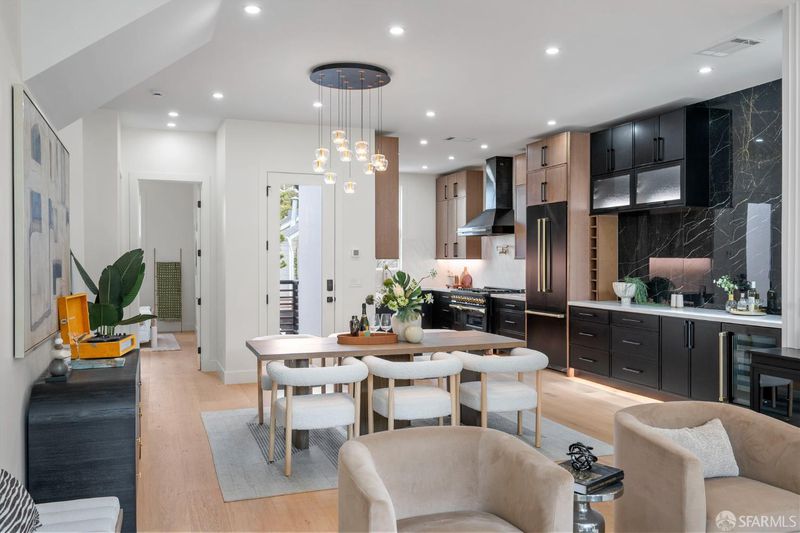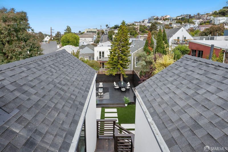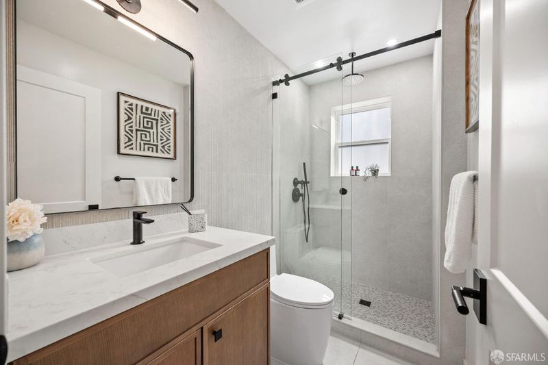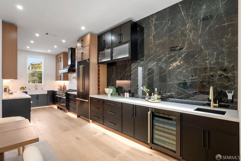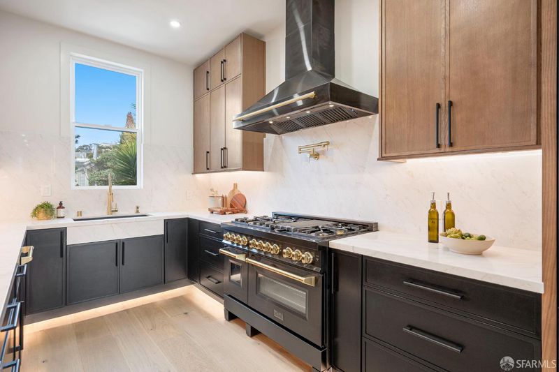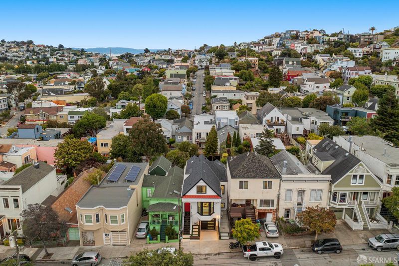 Situated on the north slope of Bernal Heights is an Edwardian style home with Spanish Revival influences. This down-to-the-studs renovation blends contemporary luxury with timeless San Francisco charm. Spanning 3 levels of elevated living, offering 4-beds, 4-baths with new foundation, roof, electrical, and plumbing. Main level features an open concept living with high ceilings, Calacatta quartz countertop, porcelain tiles, and a custom gas fireplace. A chef's kitchen and dining space is ideal for entertainment with ZLINE Autograph appliances, Spanish bathroom tiles, engineered hardwood floor, and a walkout deck overseeing a beautifully landscaped yard. A bedroom and a full bathroom provides flexibility for guests or office space completes this level. Connected by a custom staircase, upstairs you'll find a private primary suite offering plenty of closet space and storage, a soaking tub, and peekaboo views of downtown San Francisco. Downstairs offers 2-beds, 2-baths, laundry room, additional storage, 1-car garage, and media space that opens out to an oversized backyard oasis. Located just minutes from Precita Park Cafe, Restaurants, Bernal Heights Park Trail, Cortland Avenue Shops, major freeways, and tech shuttle access.