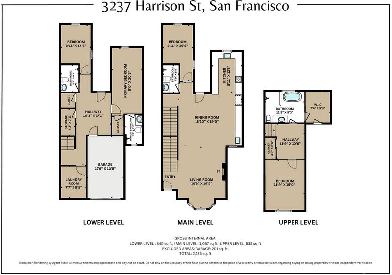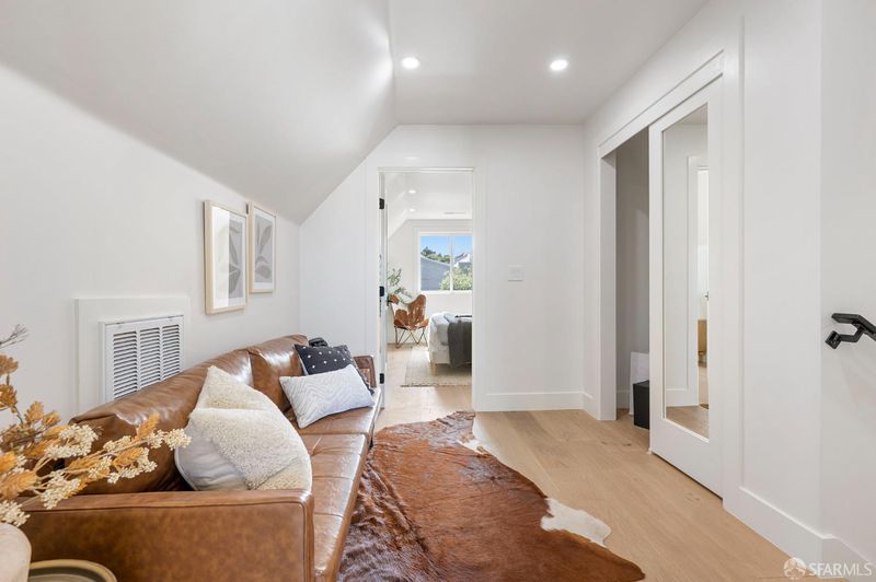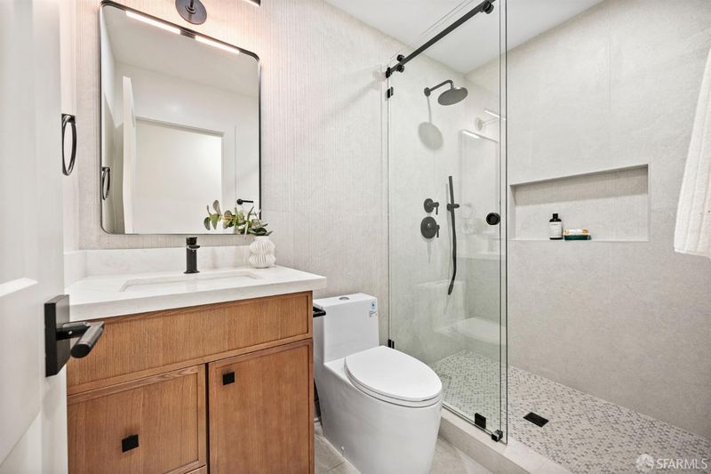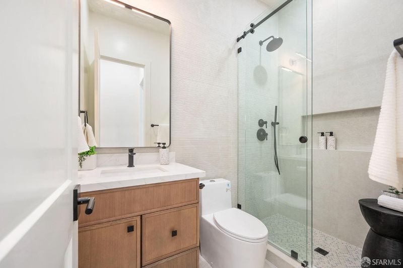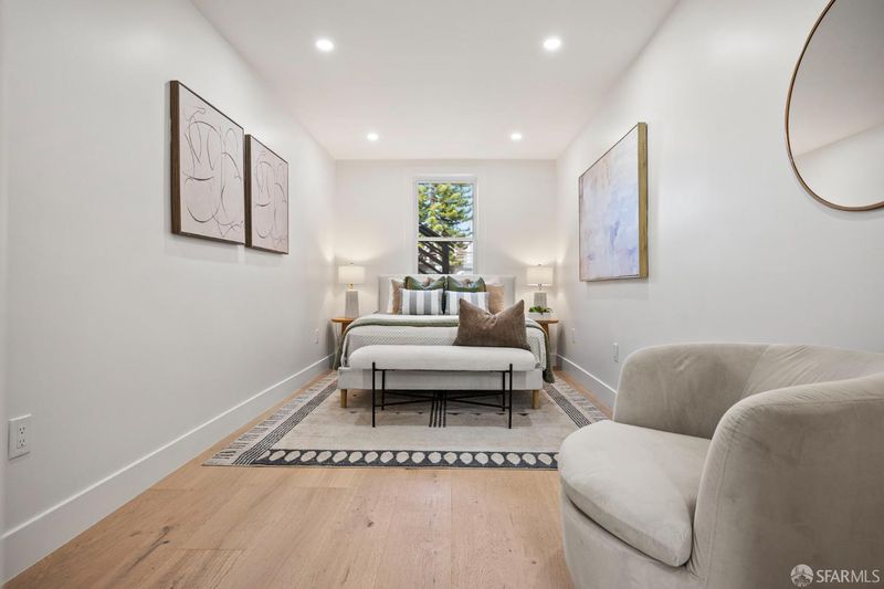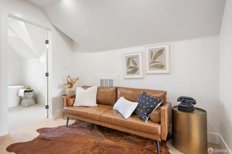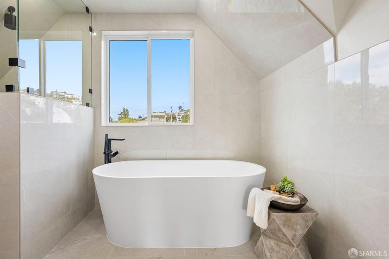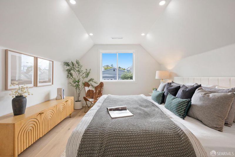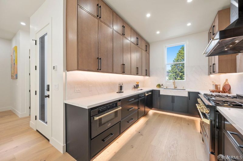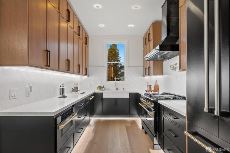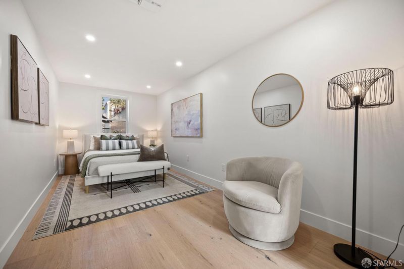 Situated on the north slope of Bernal Heights is an Edwardian style home with Spanish Revival influences. This down-to-the-studs renovation blends contemporary luxury with timeless San Francisco charm. Spanning 3 levels of elevated living, offering 4-beds, 4-baths with new foundation, roof, electrical, and plumbing. Main level features an open concept living with high ceilings, Calacatta quartz countertop, porcelain tiles, and a custom gas fireplace. A chef's kitchen and dining space is ideal for entertainment with ZLINE Autograph appliances, Spanish bathroom tiles, engineered hardwood floor, and a walkout deck overseeing a beautifully landscaped yard. A bedroom and a full bathroom provides flexibility for guests or office space completes this level. Connected by a custom staircase, upstairs you'll find a private primary suite offering plenty of closet space and storage, a soaking tub, and peekaboo views of downtown San Francisco. Downstairs offers 2-beds, 2-baths, laundry room, additional storage, 1-car garage, and media space that opens out to an oversized backyard oasis. Located just minutes from Precita Park Cafe, Restaurants, Bernal Heights Park Trail, Cortland Avenue Shops, major freeways, and tech shuttle access.