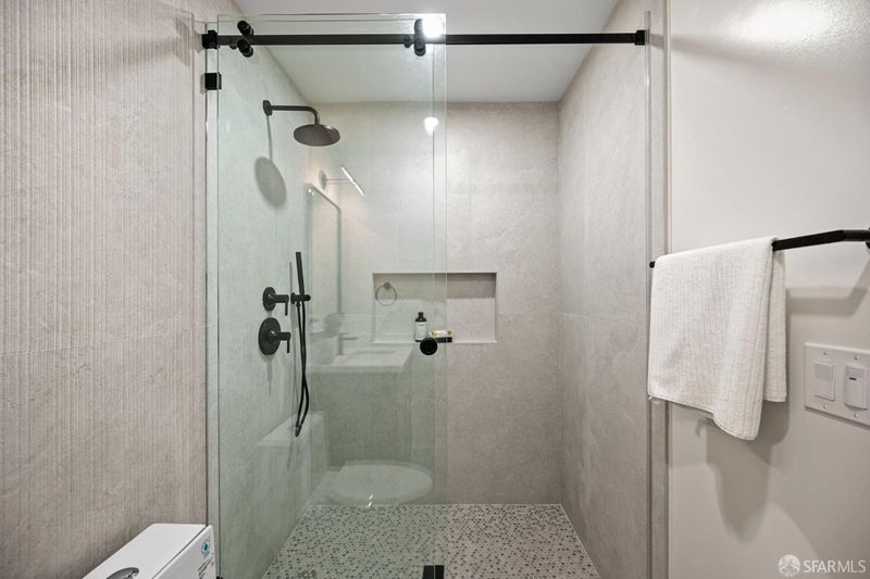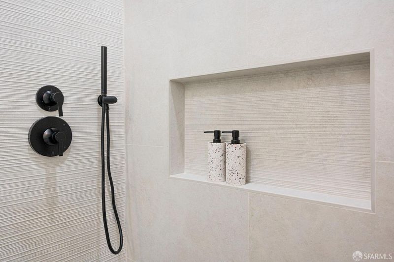 - Multiple Shower Heads, Shower Stall(s), Tile, Window