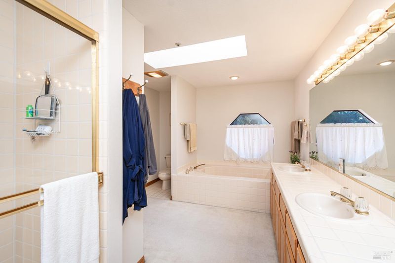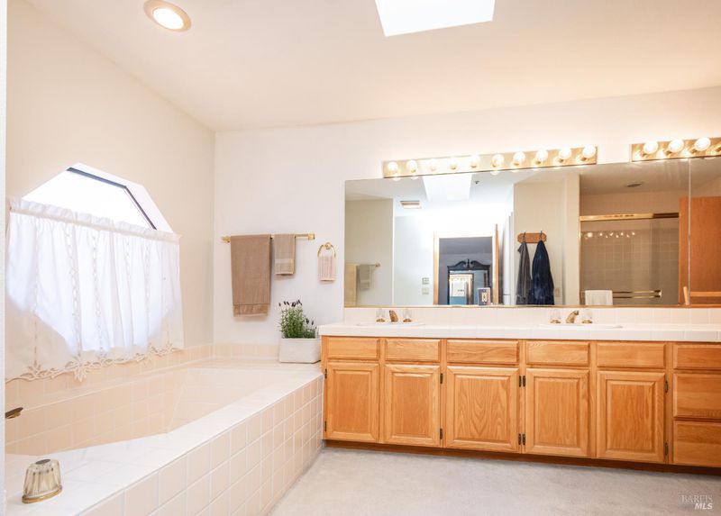 - Double Sinks, Shower Stall(s), Tile, Tub