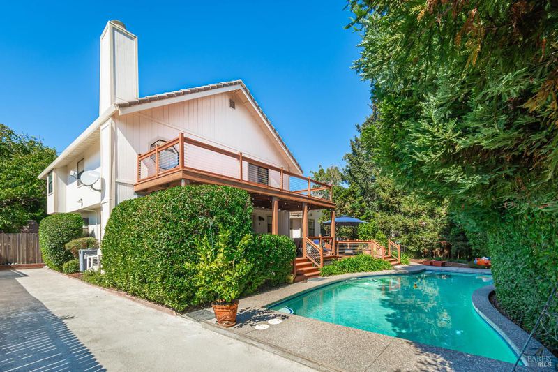 Your Private Sanctuary in Napa's Bucolic Browns Valley - Nestled in a premier location on Napa's desirable west side, this custom-built, 3/2/1, at 2,678 sqft home offers a rare blend of elegant entertaining & peaceful retreat. A formal entry welcomes you into a warm and receptive floor plan, where wood floors grace much of the living space. The separate living room, with its cozy fireplace and built-in bookshelves, provides a quiet escape. Architecturally placed windows draw your gaze to the stunning backyard, seamlessly connecting the indoors with the out. The large kitchen flows into a comfortable family room with its own fireplace, creating the perfect hub for daily life. Step outside to discover your private oasis, with a lot size of 11,643 sf. The expansive, tree-shaded yard features an in-ground pool and spa, a bocce court, and an updated deck with a built-in BBQ area. The primary suite is a true haven, with a slider to its own deckperfect for greeting the morning sun while overlooking the yard's happenings. Enjoy the best of Napa living, with nearby hiking and cycling trails, convenient shopping at the Browns Valley market, and local favorites like HopCreek restaurant just moments away. This is an exceptional opportunity to embrace a coveted lifestyle.
