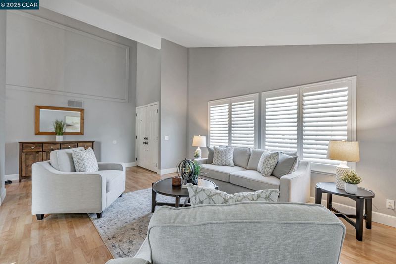 Welcome to your future home at the end of a charming cul-de-sac, nestled beside a tranquil Greenbelt in the Crossings. This spacious single-family home features 3 bedrooms and 2.5 baths, offering plenty of room for comfortable living. The living room and formal dining room boast stunning vaulted ceilings, creating an open and airy feel. The kitchen, complete with a nook, is perfect for casual meals, while the spacious family room offers a great space for relaxation by the cozy fireplace. The primary suite has vaulted ceilings, two closets and looks over the Greenbelt. This home is freshly updated with new carpets, custom plantation shutters, new Kitchen counter tops, newer appliances, and freshly painted exteriors and interiors, plus a brand-new driveway. Enjoy the benefits of a community with low HOA dues that grant you access to several pools, dog run, tennis and basketball courts, and a clubhouse. With convenient sidewalks you never have to worry when taking a stroll. This neighborhood feeds into the top-rated Walnut Creek Foothill Middle and Northgate High schools. Is close to BART and offers easy freeway access for commuters. This is a home that blends comfort, community, and convenience seamlessly.