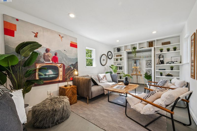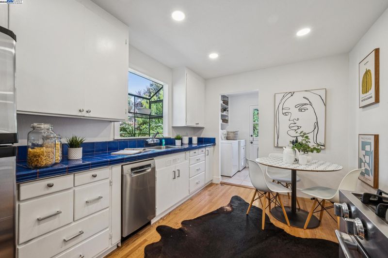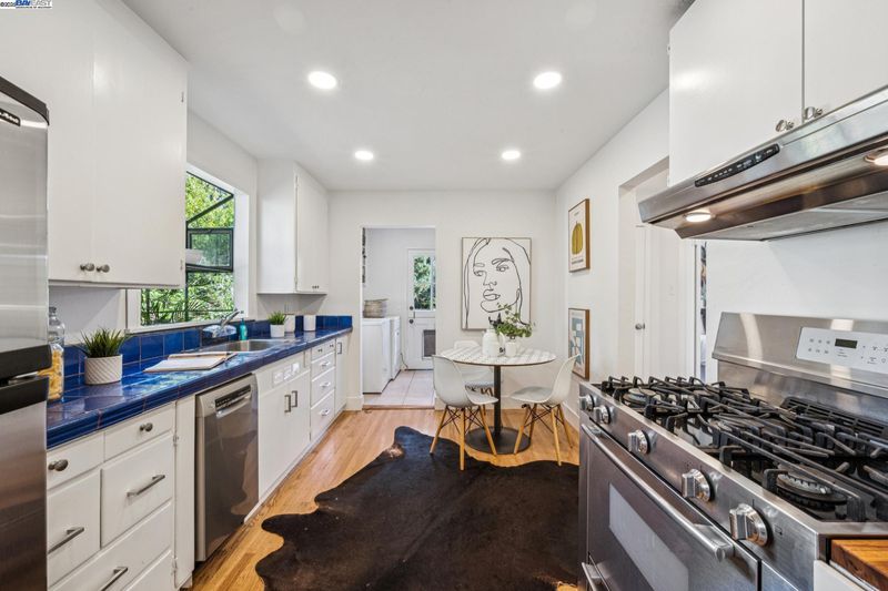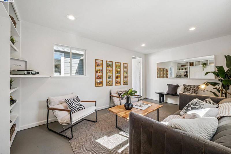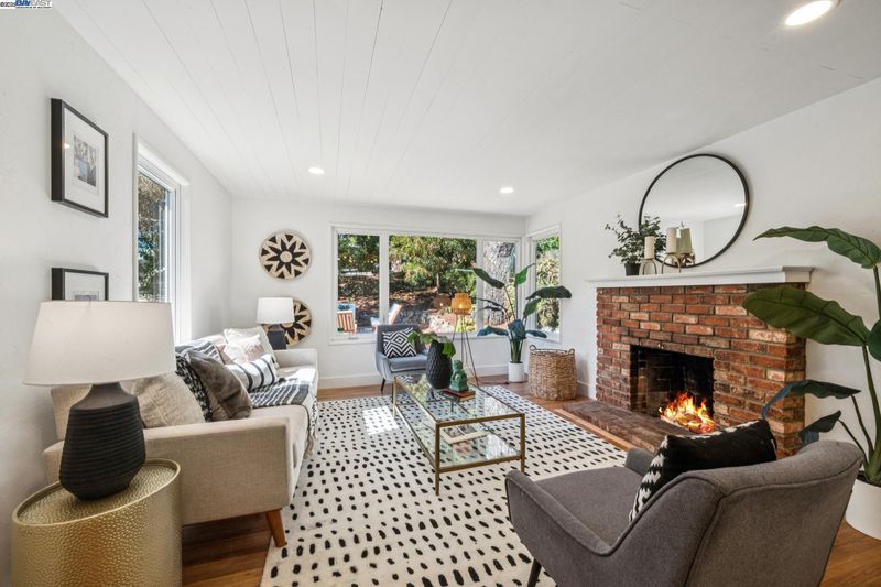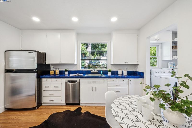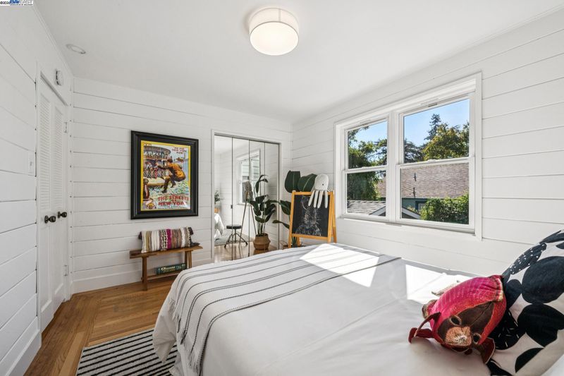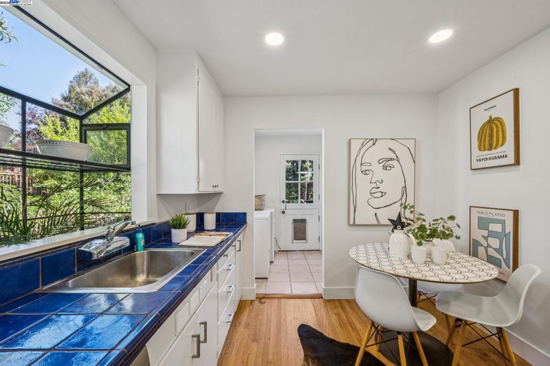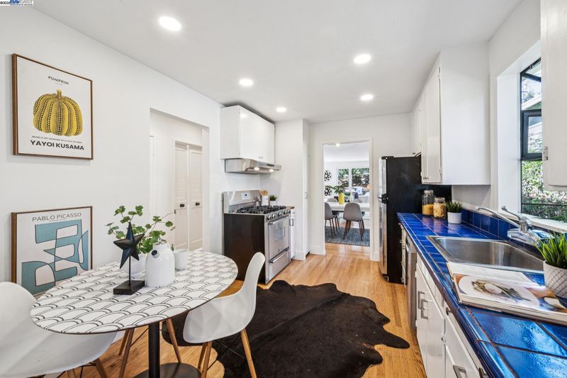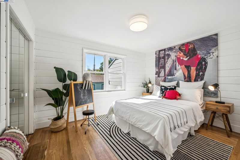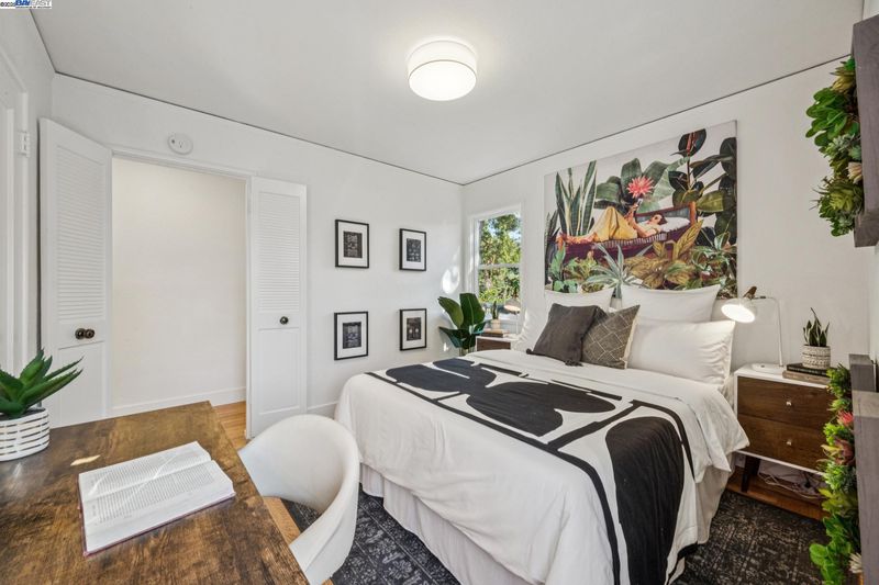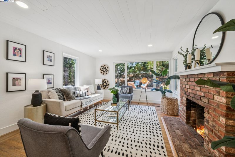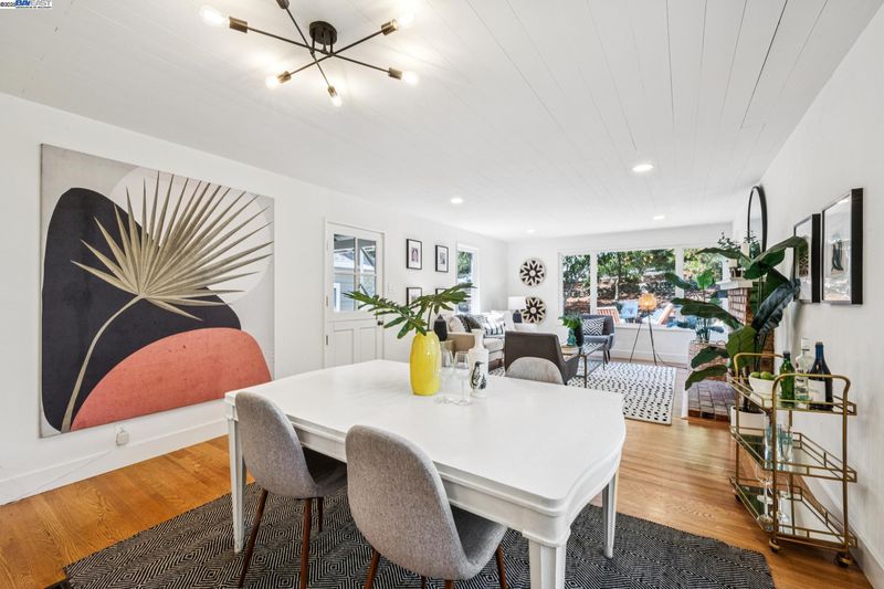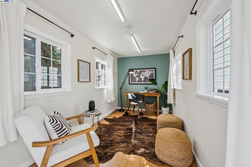 Enjoy the beautiful East Bay hills as a backdrop to your life in this stylishly upgraded 2+BD/1BA bungalow with two separate casitas steps from the King Estate Open Space. Privately surrounded by mature trees, the 1310 SQFT home welcomes you with a charming Dutch door and front yard seating area. Step into the sunny living room where you can relax with a fireplace and garden view. A clapboard ceiling and beautiful hardwood floors span into the dining room, and the upgraded eat-in kitchen features new appliances and recessed lighting. Through a convenient laundry area, there’s another Dutch door onto a deck for wonderful indoor/outdoor living. Dine al fresco overlooking the spacious backyard, entertain friends on the large front patio, or play in the garden. A recently built casita is perfect as an office or workshop, while the freestanding converted garage makes for another great space to work or unwind. Back inside two sunny bedrooms share a full bath. One bedroom includes a cedar-lined closet and clapboard walls, while one is slightly larger with backyard views. Parking is easy with a parking pad and long driveway. Out the front door, take your dog to the open space park down the street and admire the panoramic views, or visit the zoo and the multiple regional parks nearby.
