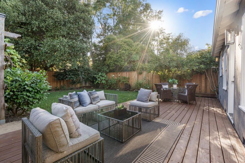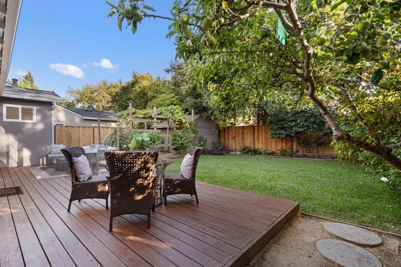 Welcome to this updated and charming residence, gracefully nestled in one of the Peninsulas most coveted and convenient neighborhoods. Thoughtfully renovated with timeless appeal, this 3-bedroom, 2-bathroom home showcases an elegant living room anchored by a classic fireplace, a stunning eat-in kitchen adorned with custom white cabinetry and premium appliances, and a formal dining area ideal for both intimate gatherings and everyday living. The beautifully appointed hall way bathroom features refined herringbone-patterned tile, while the ensuite bath boasts an oversized counter and a spacious layout designed for comfort and luxury. All three bedrooms are generously proportioned, and filled with natural light. Step into a backyard retreat with a lush lawn, spacious deck, and raised garden beds brimming with grapes, tomatoes, and flowers. An apple tree along the side promises the joy of fresh apple picking, while an attached shed provides ample storage. Exceptional location just minutes from downtown Menlo Park, Redwood City, Stanford University, and a short stroll to Marsh Manor, Starbucks, and Delucchis Market. Zoned for the highly acclaimed Menlo-Atherton High School, this move-in-ready home offers the perfect blend of elegance, comfort, and prime Peninsula living.