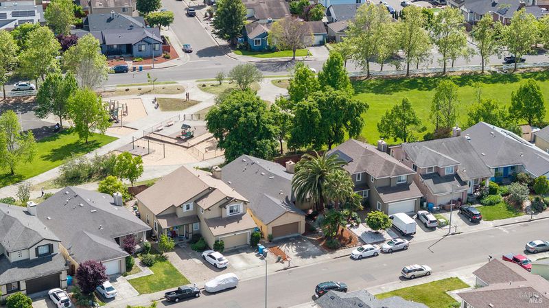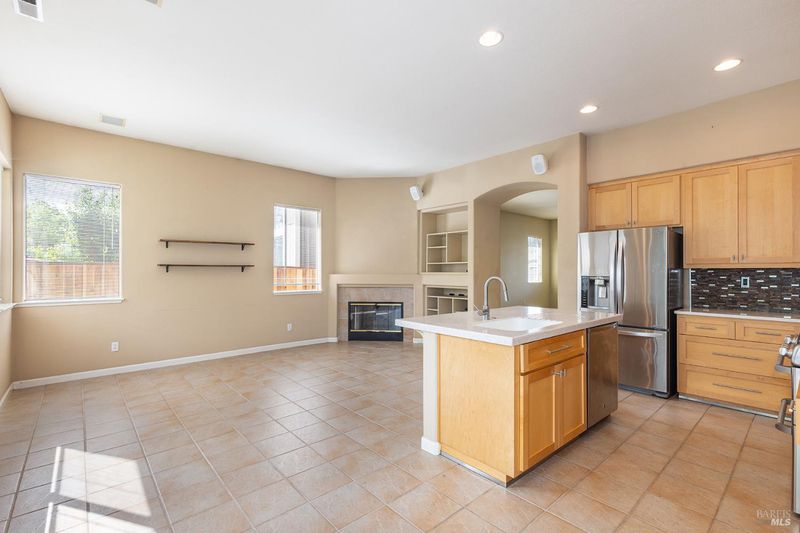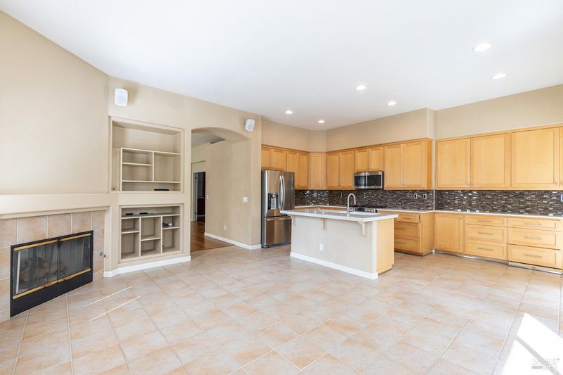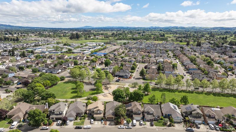 Single-level 4 bedroom, 2 bathroom home in Bellevue Ranch. The kitchen has been tastefully upgraded with quartz counters, a custom tile backsplash, refreshed cabinetry, a Corian sink, and stainless steel appliances. The primary suite features a remodeled bath with a tiled walk-in shower, zebra wood cabinet finishes, and heated wide-plank tile flooring. The backyard is designed for outdoor living with a custom patio, gazebo with sun shade, garden area, and a private gate providing direct access to the park.