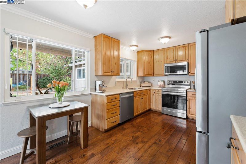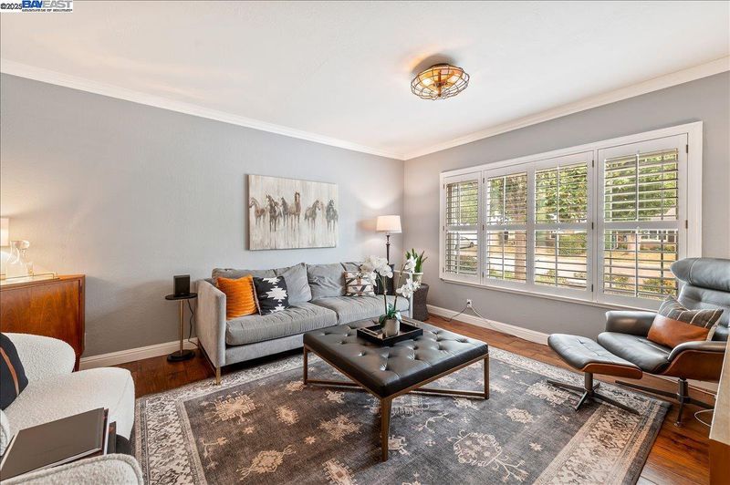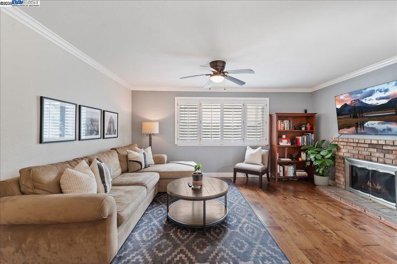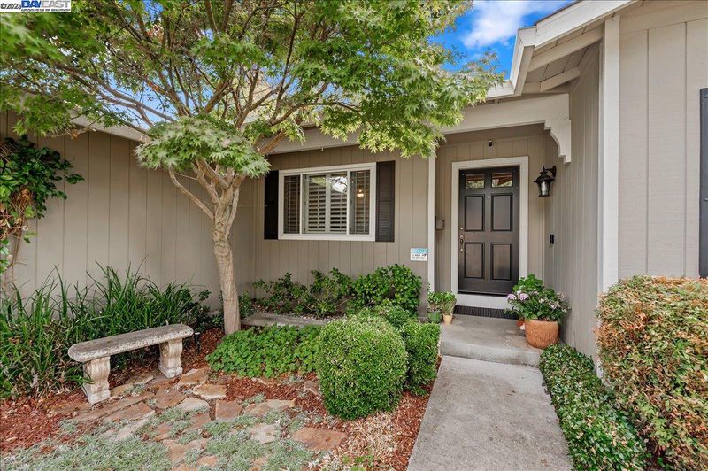 Perfectly situated across from Bicentennial Park, this beautifully renovated East-facing single-story home blends timeless style with thoughtful modern upgrades. Distressed hardwood floors, 4-inch baseboards, and crown molding extend throughout, enhanced by fresh designer paint. The remodeled kitchen showcases solid wood cabinetry, Corian counters, and Samsung stainless steel appliances including a convection oven and new refrigerator, built-in microwave and dishwasher, opening to a welcoming family room with fireplace and backyard access. The newly updated baths feature Quartz dual vanities, custom cabinetry, modern lighting, fixtures, and stylish tile flooring. Energy-efficient upgrades include Anlin dual-pane windows with plantation shutters, Eagle Shield attic insulation, and solar panels keeping electric bills under $100/mo. Additional highlights—newer furnace, AC, water heater, and LG washer/dryer—provide comfort and peace of mind. Outdoors, enjoy a private retreat with large patio, mature landscaping, lush lawn, and fenced garden with raised planter beds. Large side yard with 3 sheds and potential for RV parking. Close to top schools, parks, and shopping, this Pleasanton gem is ready to be your next home.