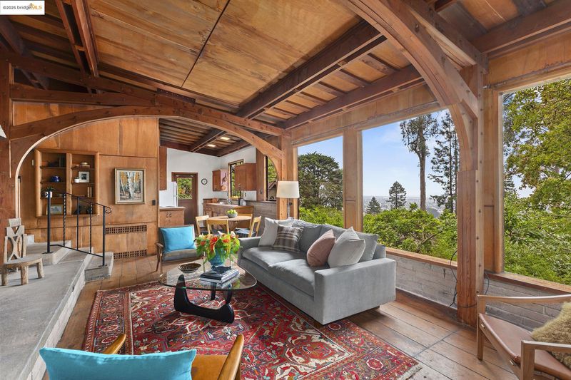 NO OPEN HOUSES. VIEWABLE W/AGENTS. 2 Maybeck Twin Drive, known as Arillaga, is the last home Bernard Maybeck designed. Created in 1951 for his son and daughter-in-law, Wallen & Jacomena & built by Jacomena’s cousin Robert “Red” Kleyn-Schorel, this 2-bd, 1-ba residence rests on an expansive 10,434 sq ft lot in a private enclave, rich with architectural history. The home blends mid-century simplicity—low-slung lines, open glass windows, plywood & a flexible floor plan—with classic Maybeck elements, including steel windows, a striking raised-hearth fireplace & arched beams. Many original details remain intact: navy hatch cover flooring in the living room, Hawaiian sweet gum plywood ceilings, radiant heat in the concrete floors & a warm concrete hearth designed for gathering. Mostly in original condition, Arillaga is ready for thoughtful updating and offers tremendous potential to enhance its character. The property’s verdant setting includes Bay views that can be further opened with tree trimming & landscaping. A lower-level garage exists, though there is also the level-in driveway. Set on Maybeck Twin Drive, near North Berkeley shops, Arillaga offers architectural provenance, vintage charm & exciting possibilities in a nbrhd of landmark homes by renowned 20th-century architects.