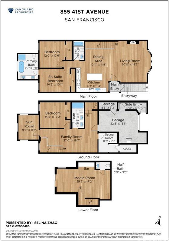 Experience the pinnacle of San Francisco living in this fully renovated, down-to-the-studs masterpiece at 855 41st Ave. Perfectly situated where sophistication meets coastal tranquility, this three-level residence offers unparalleled luxury near Ocean Beach, Golden Gate Park, top schools, Lands End, coastal hiking trails. The home boasts 4 beds 3.5 baths with a minimalistic modern design and exquisite designer touches. The main level features an expansive, open-concept living area with a sleek electric fireplace and built-in Sonos speakers, flowing into the chef's kitchen featuring top-of-the-line stainless steel smart appliances and pristine quartz countertops. The primary suite is a true sanctuary: its spa-like ensuite features a luxurious deep soaking tub, rain shower, and dual vanity. The ground level includes 2 additional bedrooms, a bath with a steam shower, and a sauna roomperfect for wellness and work-life balance. The lower level is designed for ultimate seamless indoor/outdoor entertainment, offering a living area, wet bar, and direct access to the large backyard. Engineered oak wood floors and radiant heating flow throughout. Fully seismically upgraded, a new roof, and EV charger. The sanctuary you deserve has arrived!